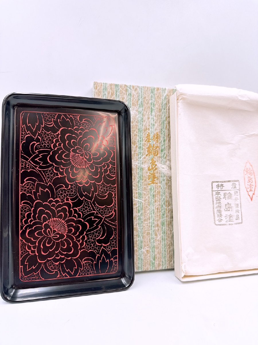 1円 未使用 輪島塗 稲忠漆芸堂 総沈金菊詰 長手盆 堅牢優美 漆器 極上堅地 現状保管品【KN001】