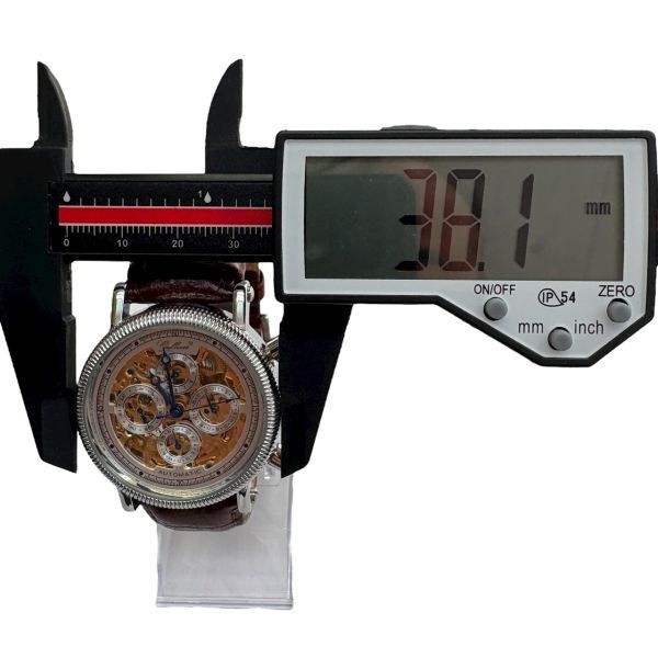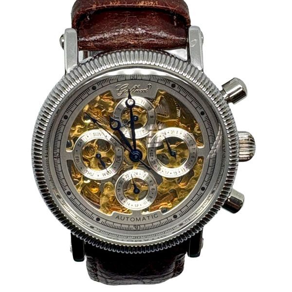 ・ 中古品です。 〇時計ケース→目立った傷や汚れはございません。 〇革ベルト→純正ベルト・純正尾錠・使用感(少) 〇時計裏蓋→目立った傷や汚れはございません。 ※詳しい状態はそれぞれ写真にてご判断願います。 ・ 風防(時計ガラス部分)には目立った傷や汚れ等はございません。 ・ リューズ操作にて時刻合わせ・日付設定ができることを確認しました。 右下プッシュ→日設定 右上プッシュ→月設定 左下(隠しボタン)プッシュ→曜日設定 ・ 現在、元気よく稼動しております。 ※日差等は計測しておりません。 ※数時間程度の検品では特に問題ございませんでした。 ・ 時計ケースサイズは画像で確認をお願いします。 ※ベルトサイズはフリーサイズです。 時計本体のみの出品です(箱/取扱い説明書はありません) 写真に写っておりますのが全てになります。 (撮影用のスタンド・デジタルノギスはつきません) 状態ランク:A 状態ランクは出品時時点での当方の主観によるランク付けです。 参考程度でお願いします。 管理:(3B)06288-2 検索 稼動品 可動品 動作品 腕時計 ウォッチ メンズウォッチ レディースウォッチ オシャレ プレゼント アンティーク ヴィンテージ オールド Y2K 00s |
