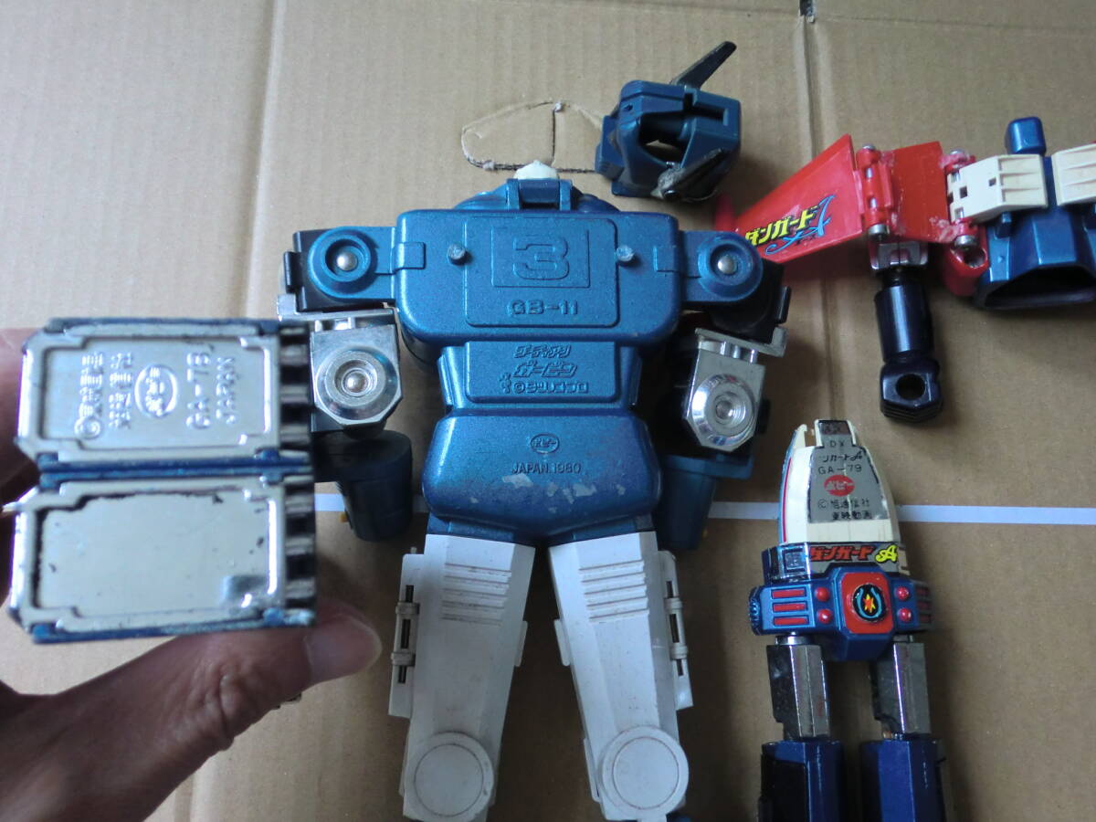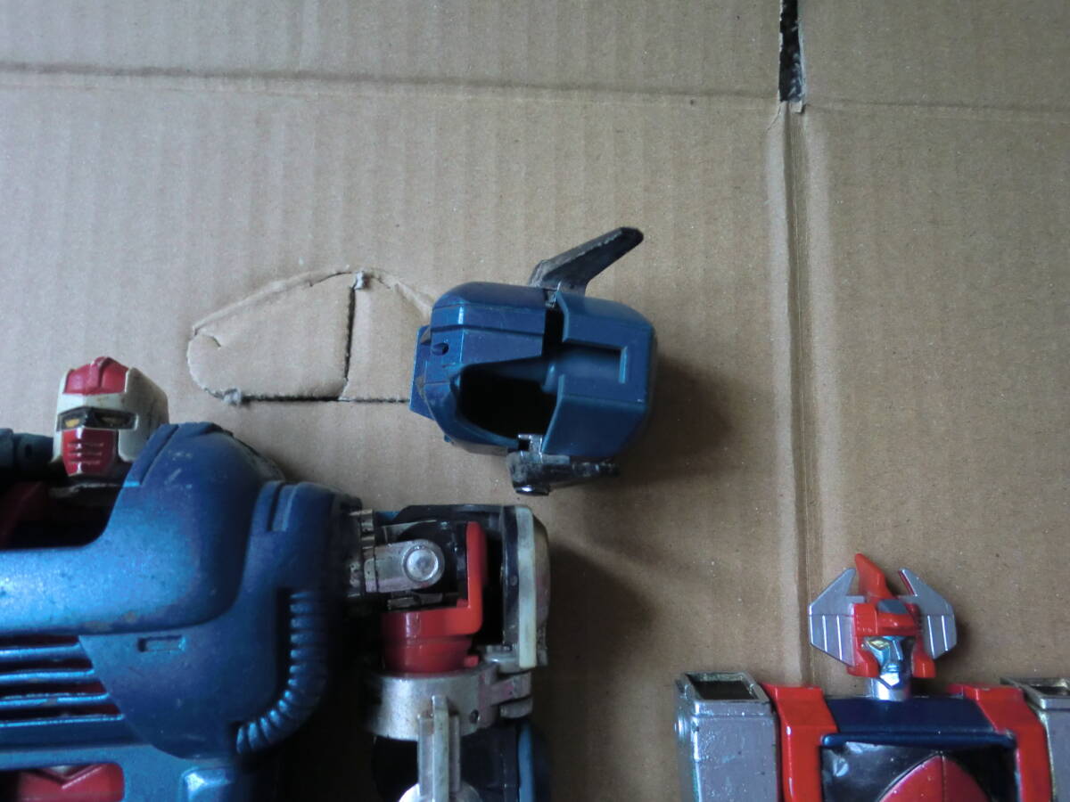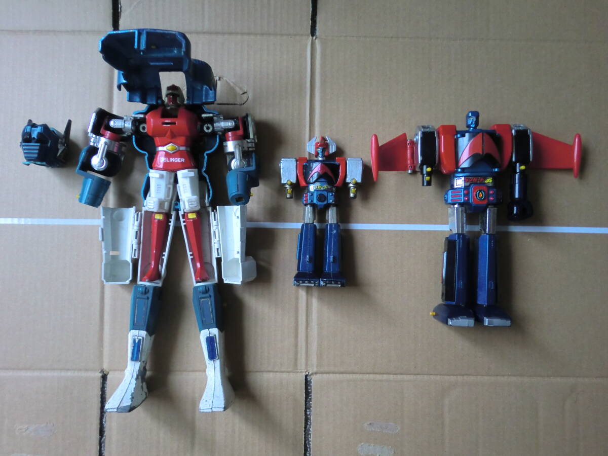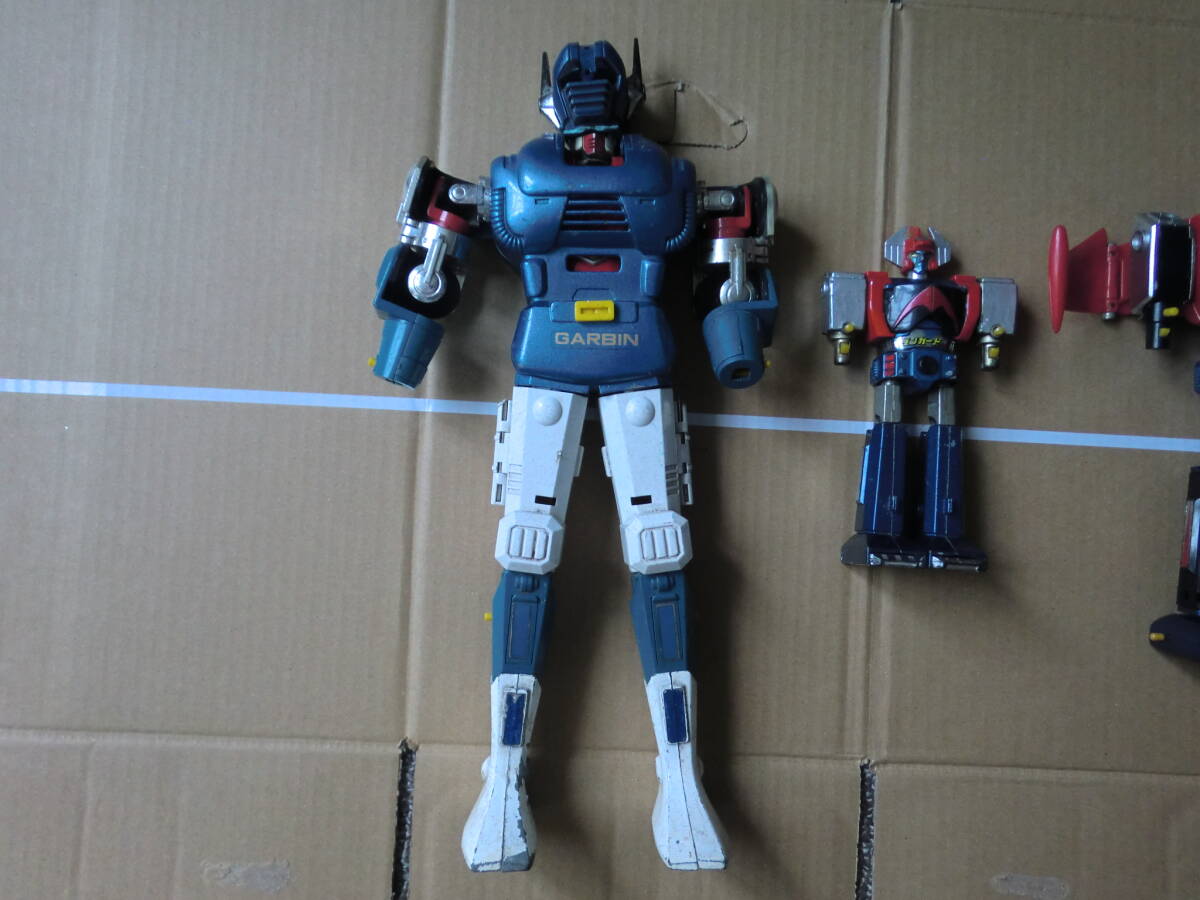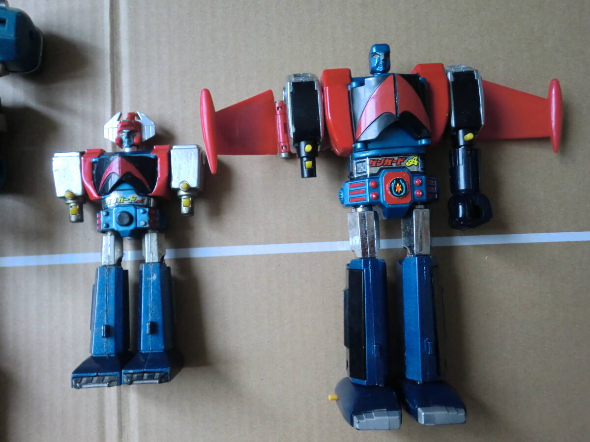 超合金のゴーディアンとダンガードAのDXと普通の3体セットです。パンチがなかったり壊れていたりや他欠品がある写真の通りのジャンク品です。ゴーディアンは高さが28センチぐらいでDXのダンガードは10センチぐらいです。傷や色はげなどある所もあります。ジャンク品ですので現状となります。現状でご理解のある方の入札をお待ちします。ノークレームノーリターンでお願いします。