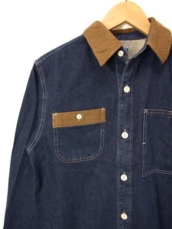 □HOUSTON/ヒューストン デニムワークシャツ コーデュロイ使い