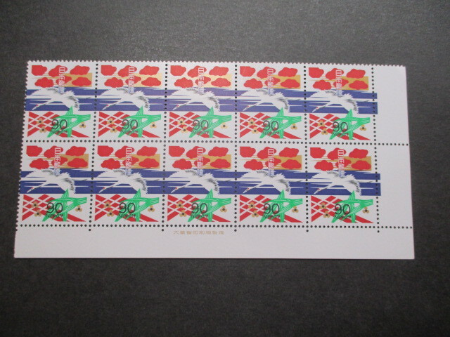 慶事切手   オモダカ模様・90円    銘版付き10枚ブロック      美品