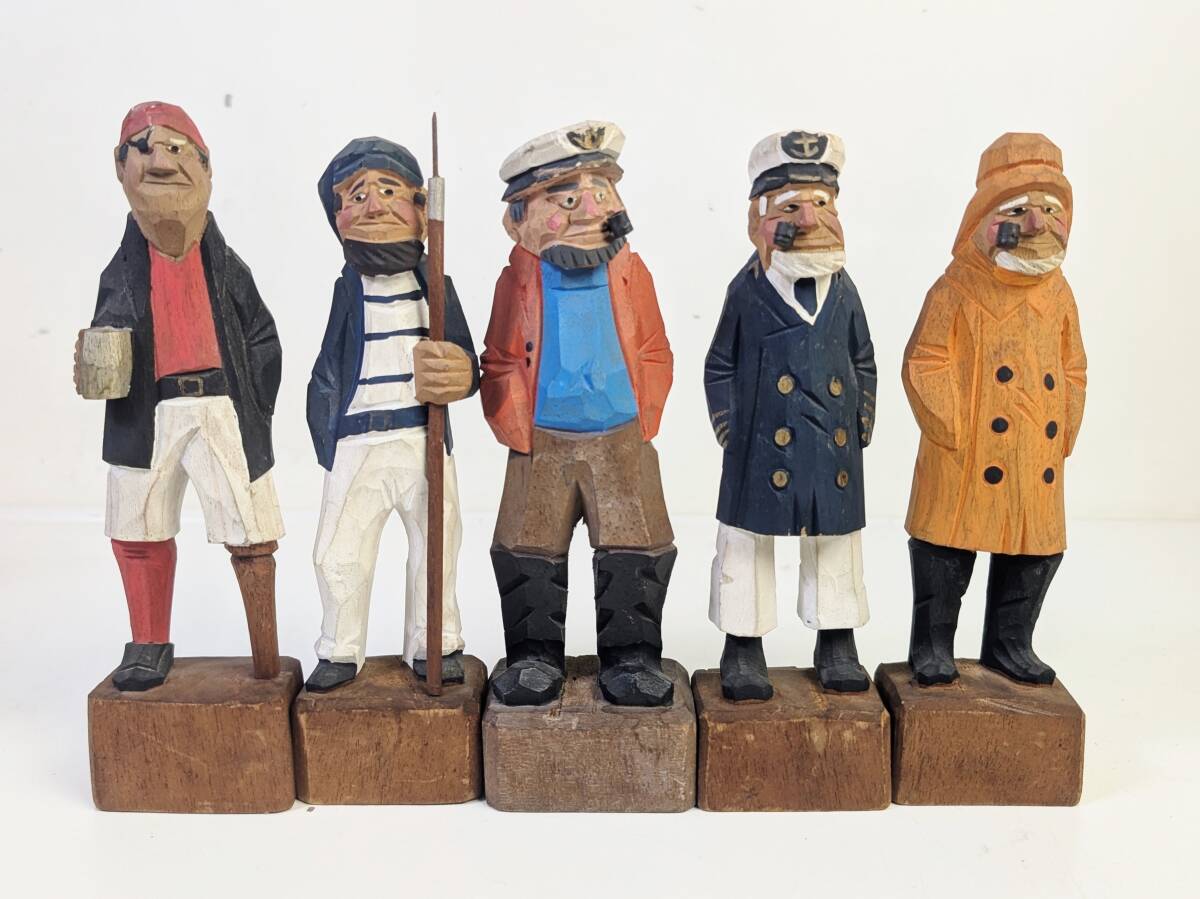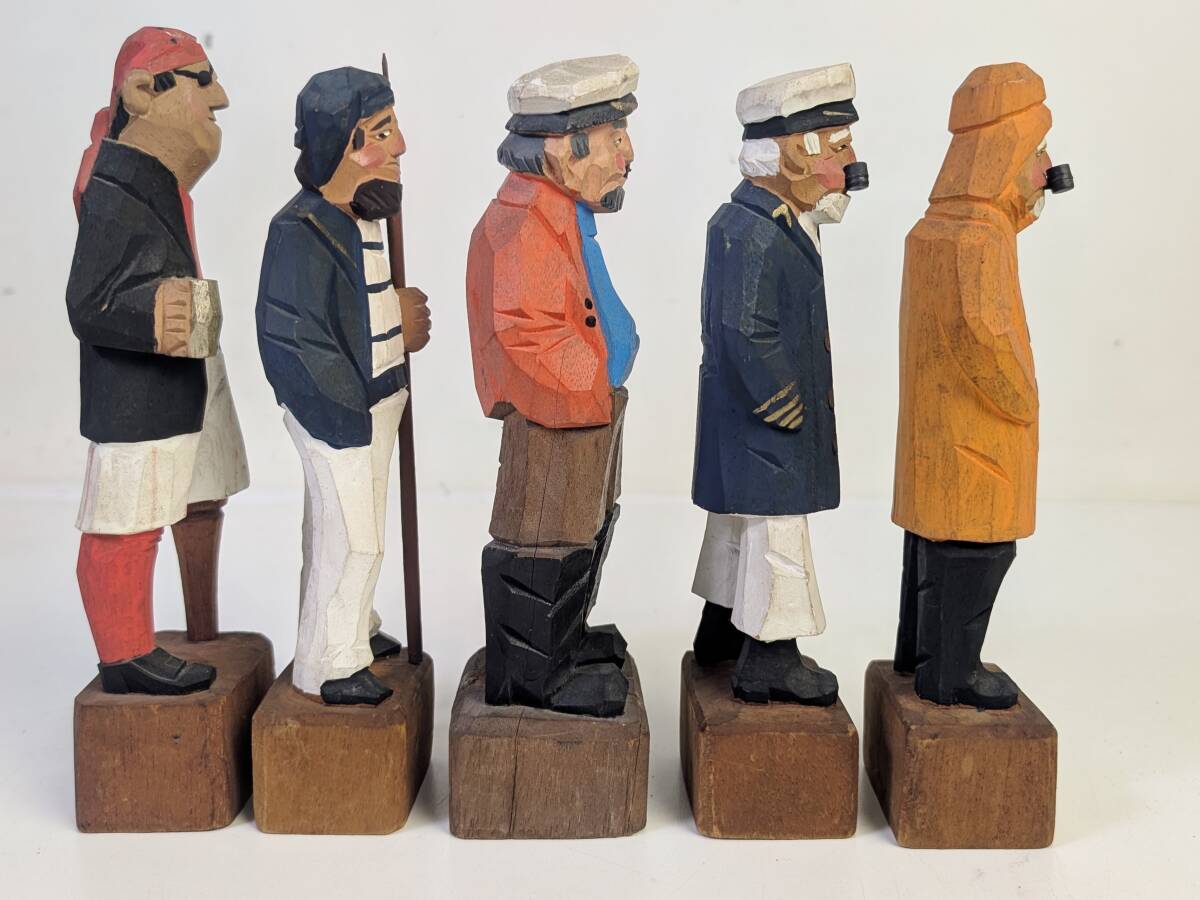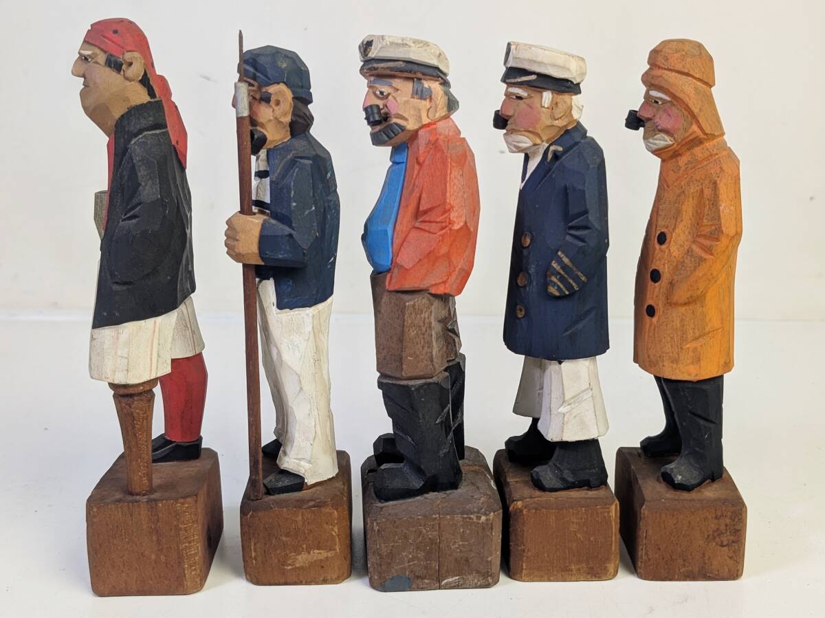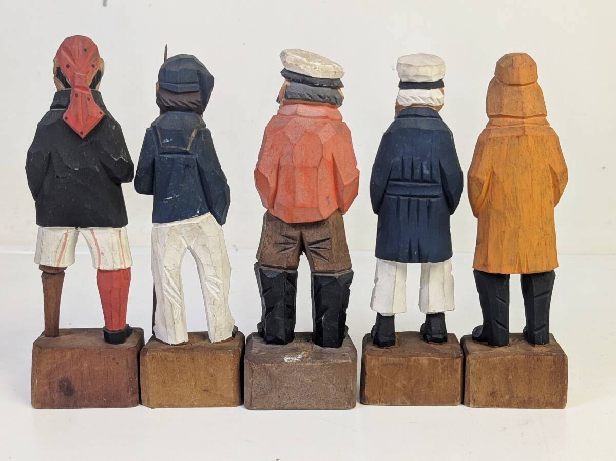 マドロス人形 5体セット 高さ21cm前後 木彫り人形 フィギュア ヴィンテージ 手彫り オブジェ インテリア 当時物 ①