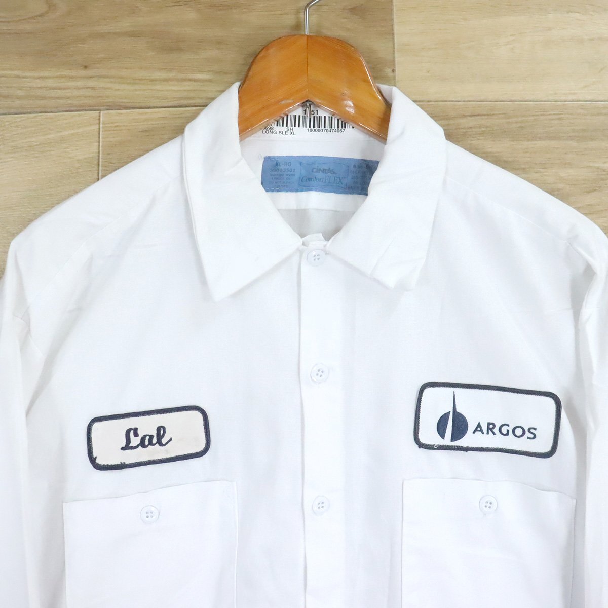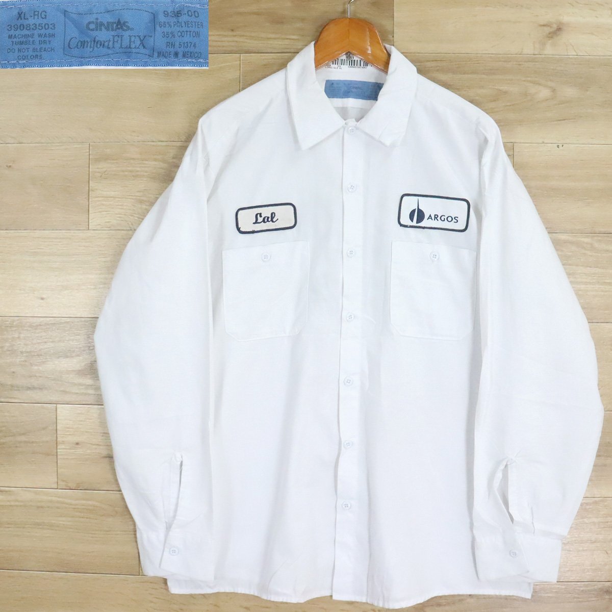 K1T/D10.24-9 アメリカ古着 Cintas シンタス ワークシャツ ワッペン XL ホワイト 文字 バック刺繍 Rag Nose