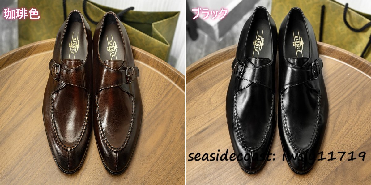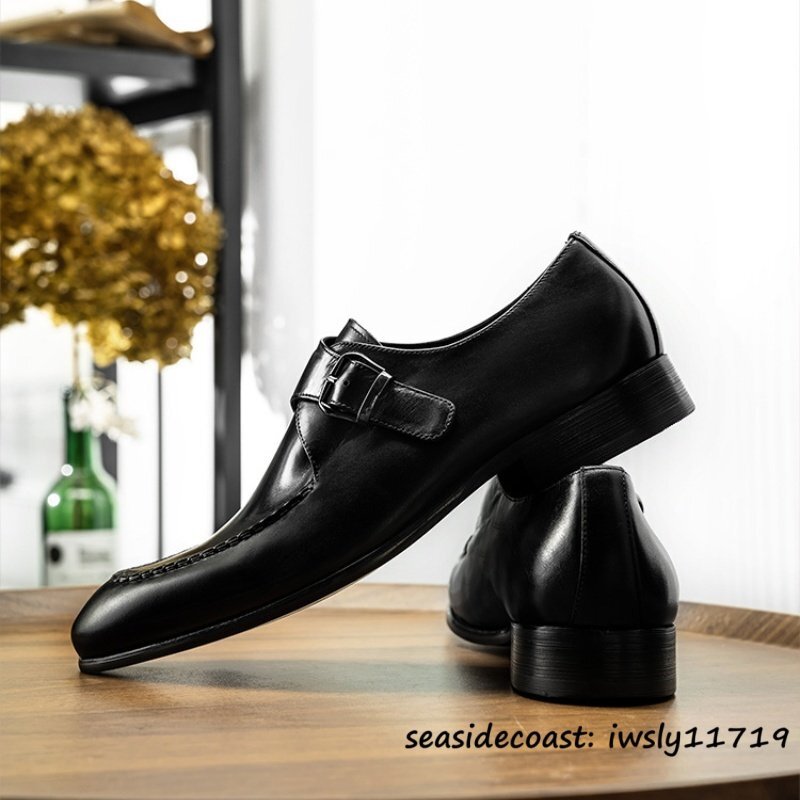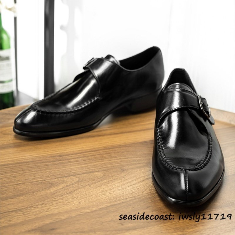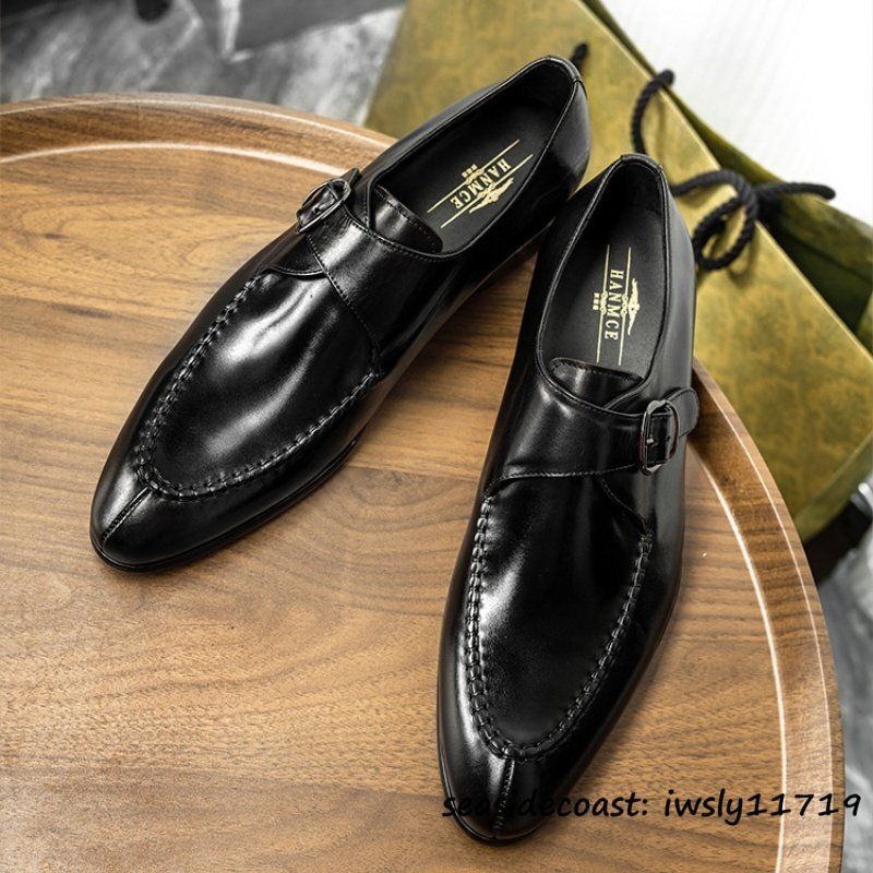 超希少★本革 レザーシューズ 職人手作り ビジネスシューズ メンズ モンクストラップ 革靴 最高級 牛革 紳士靴 フォーマル ブラック 26.5cm