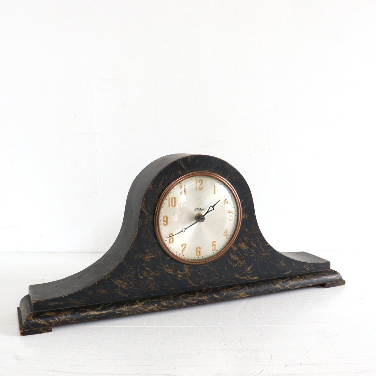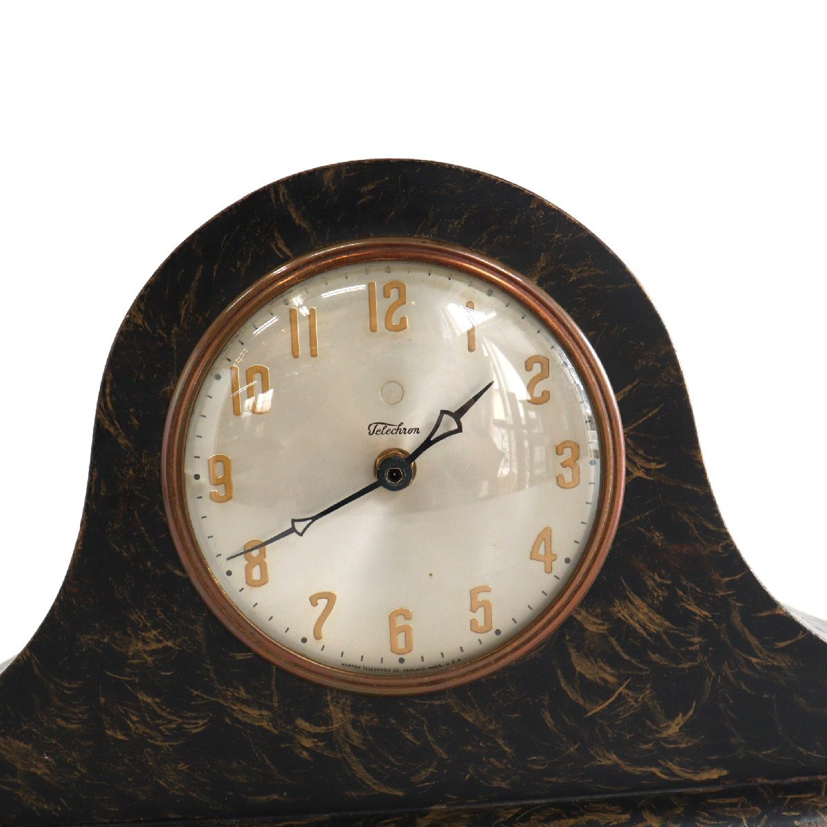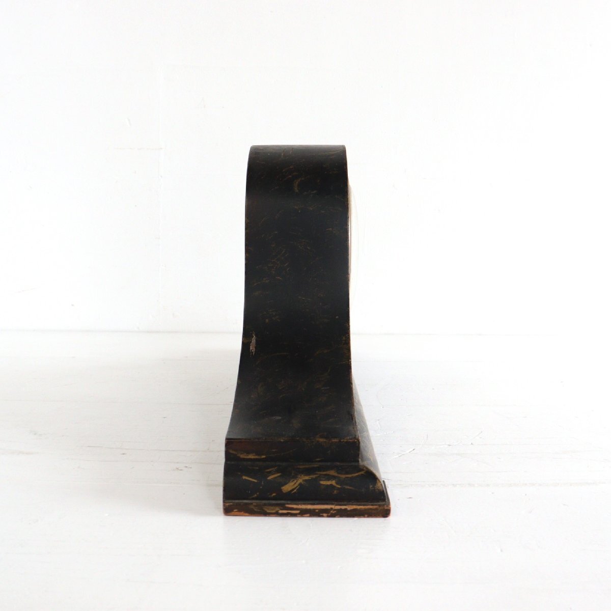 | 商品説明 explanation | 推定1950年~60年代頃の「Telechron」社のテーブルクロックです。 暖炉の上によく置かれており、マントルクロックなどとも呼ばれています。 フレームに絣のようなデザインが施されており、アンティークらしさのある良い雰囲気です。 針はオリジナルです。ムーブメントはカチカチ音がしないスイープタイプに交換しています。乾電池で動作し時間はほぼ正確です。 |