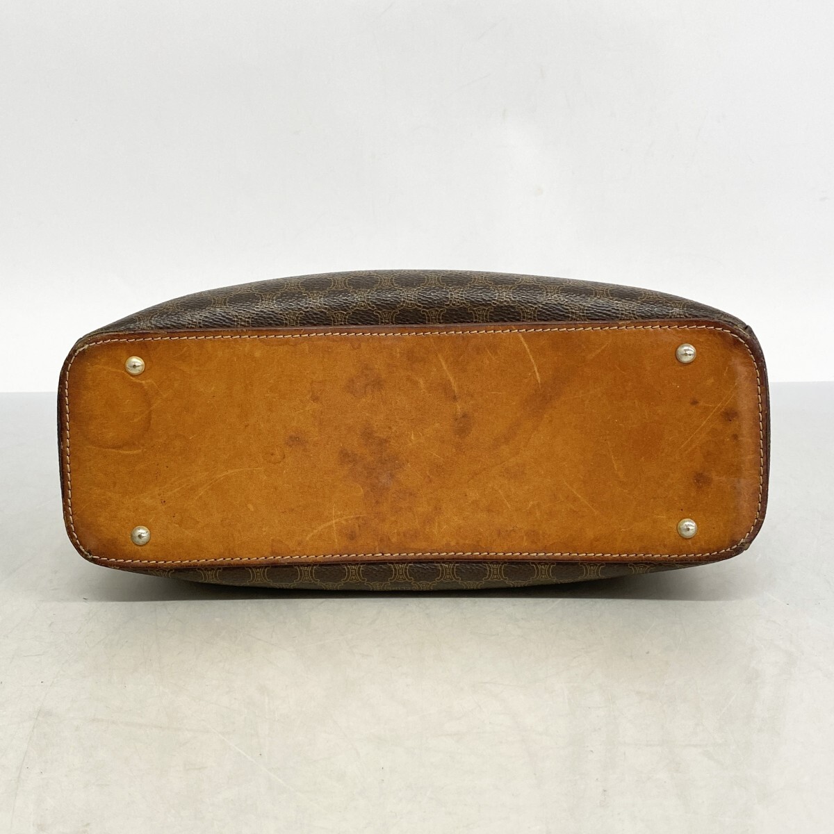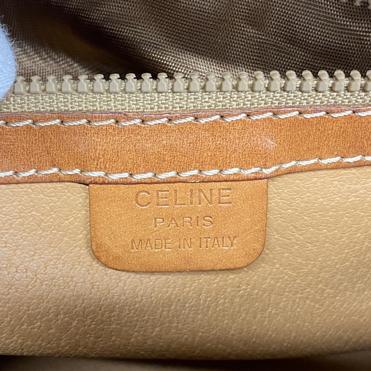 【5me6257】セリーヌ ハンドバッグ マカダム PVC ブラウン ゴールド金具【中古】レディース