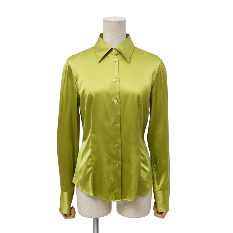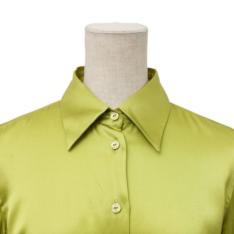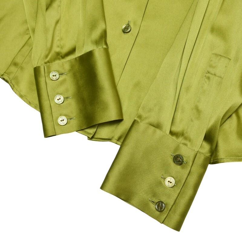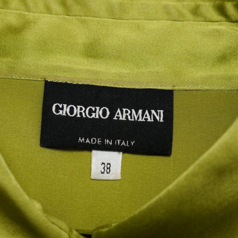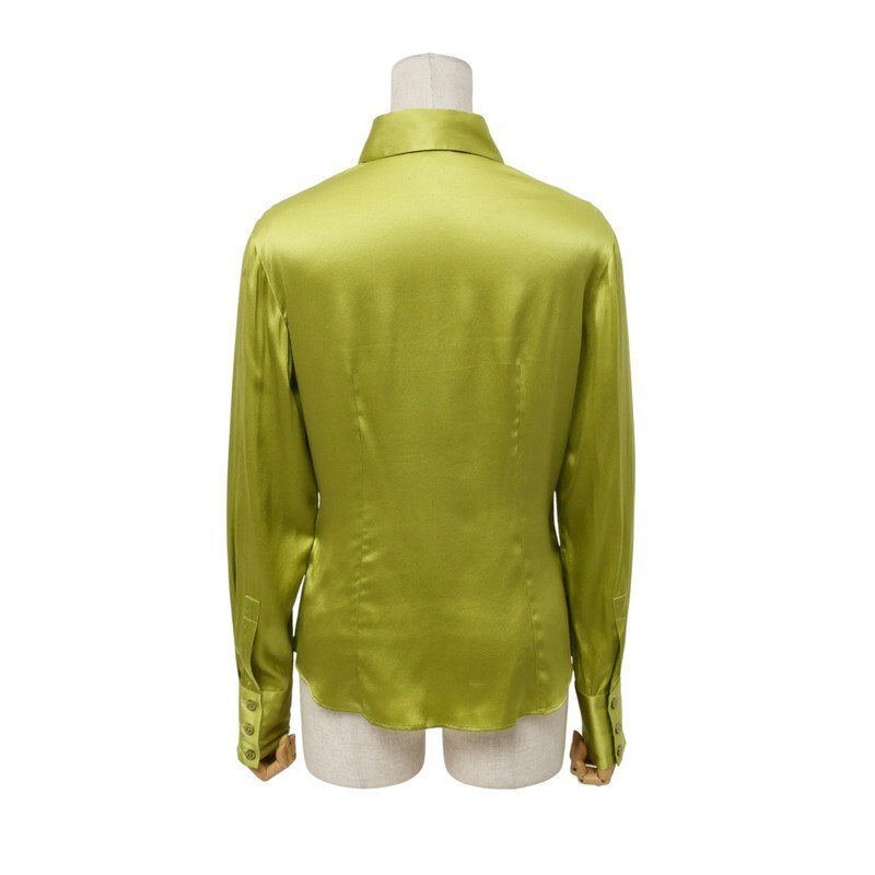| GS4913▼イタリア製*ジョルジオアルマーニ GIORGIO ARMANI*黒タグ*シルクサテン ストレッチ 長袖シャツ*光沢感*サイズ38*グリーン系 | |||