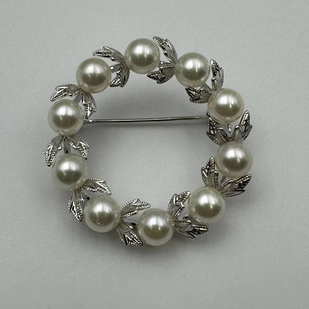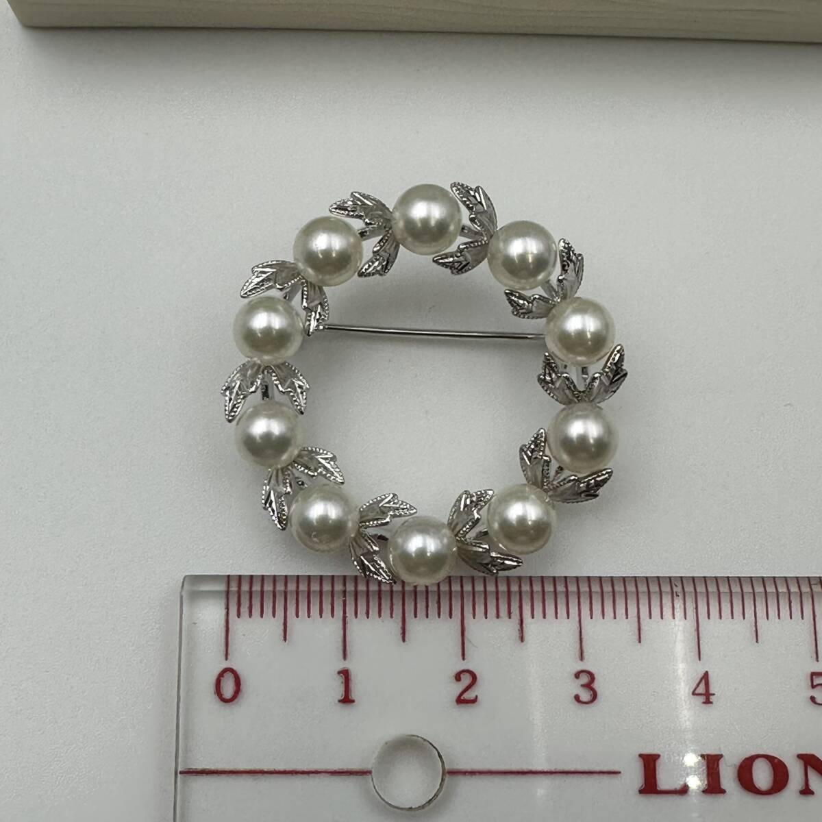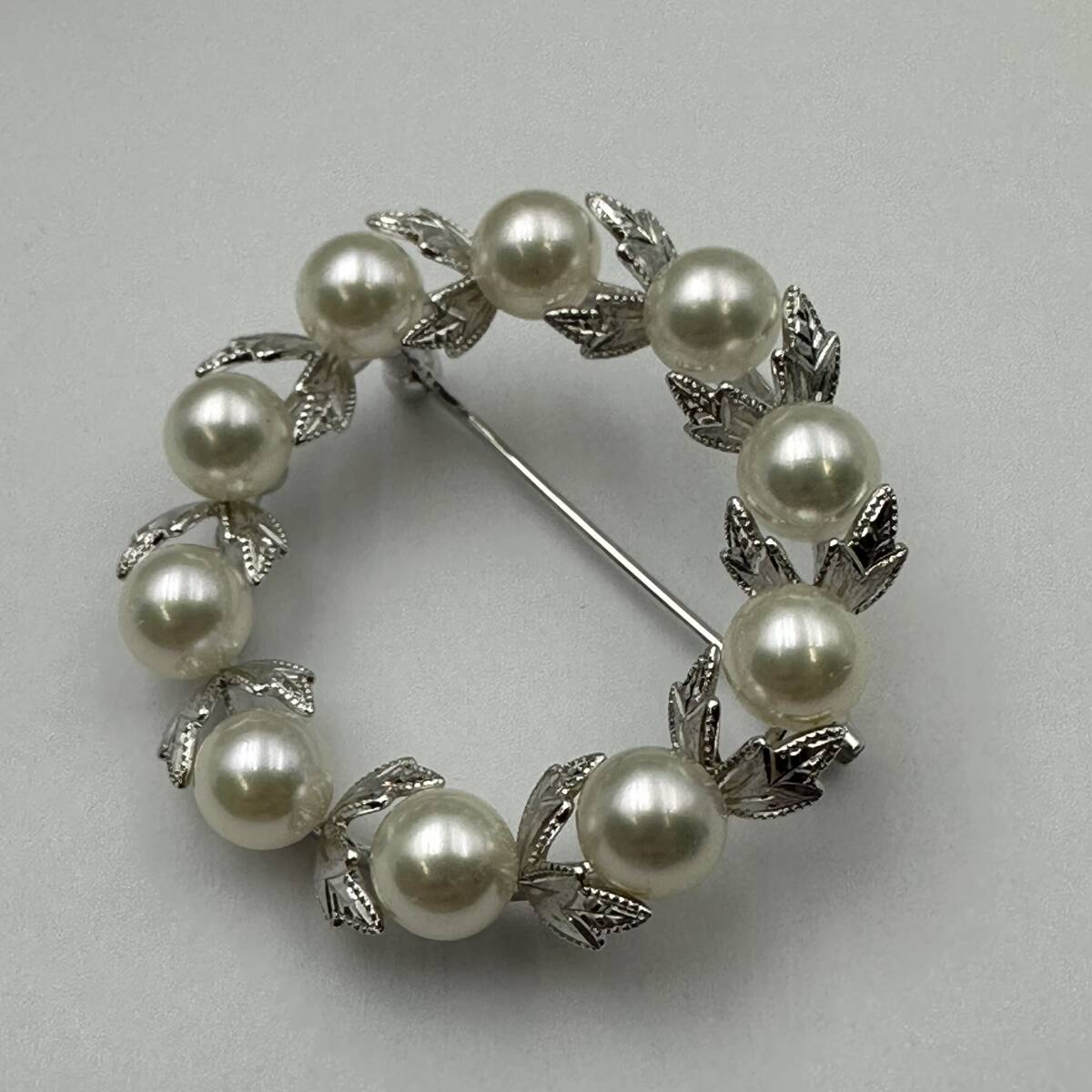 ☆MIKIMOTO ミキモト サークル ブローチ 本真珠 ベビーパール 真珠 サークル リーフ コサージュ 月桂樹 アクセサリー!