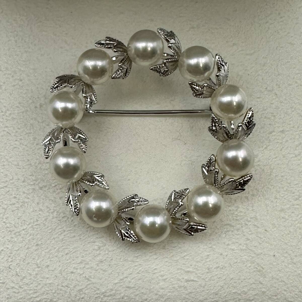 商品説明MIKIMOTO ミキモト サークル ブローチ 本真珠 ベビーパール 真珠 サークル リーフ コサージュ 月桂樹 アクセサリーです。