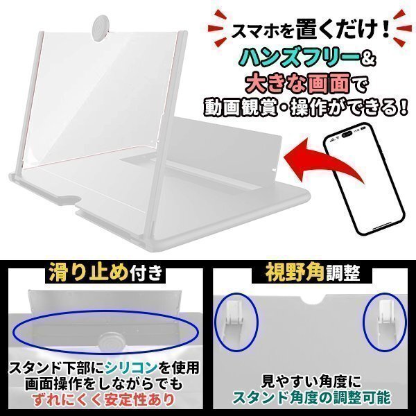 スマホ 拡大鏡 拡大 スクリーンアップ スマホ拡大鏡 高清 スクリーン拡大鏡 12インチ スマホスタンド 3D スマホ画面 拡大鏡