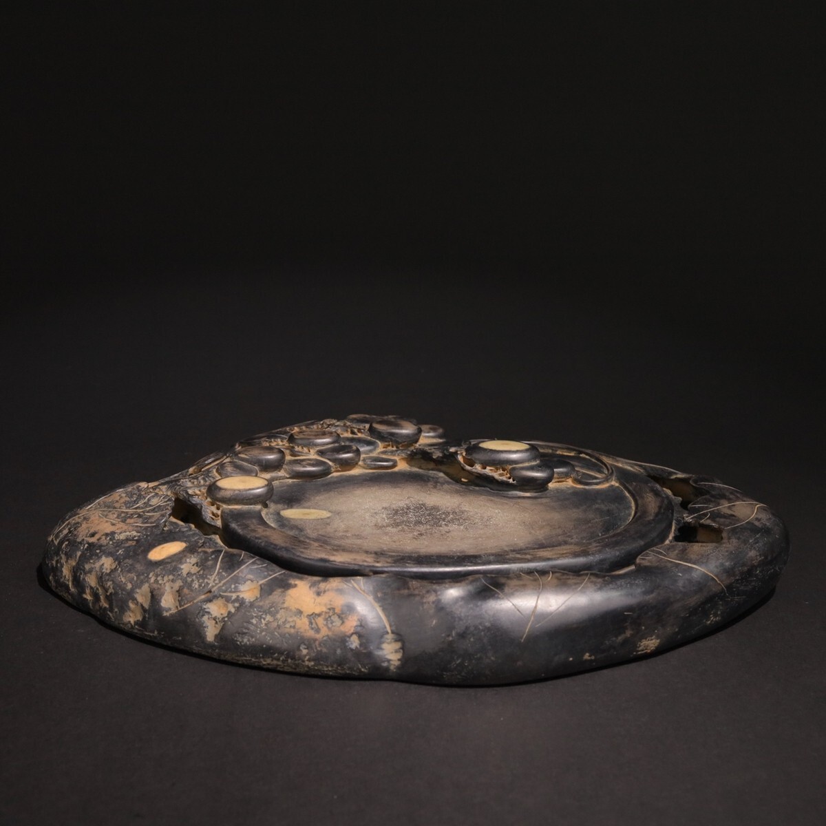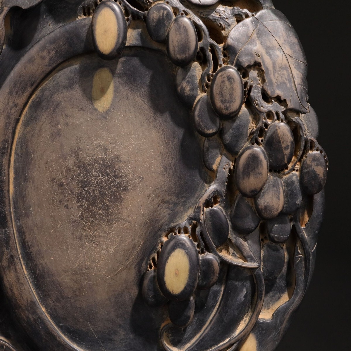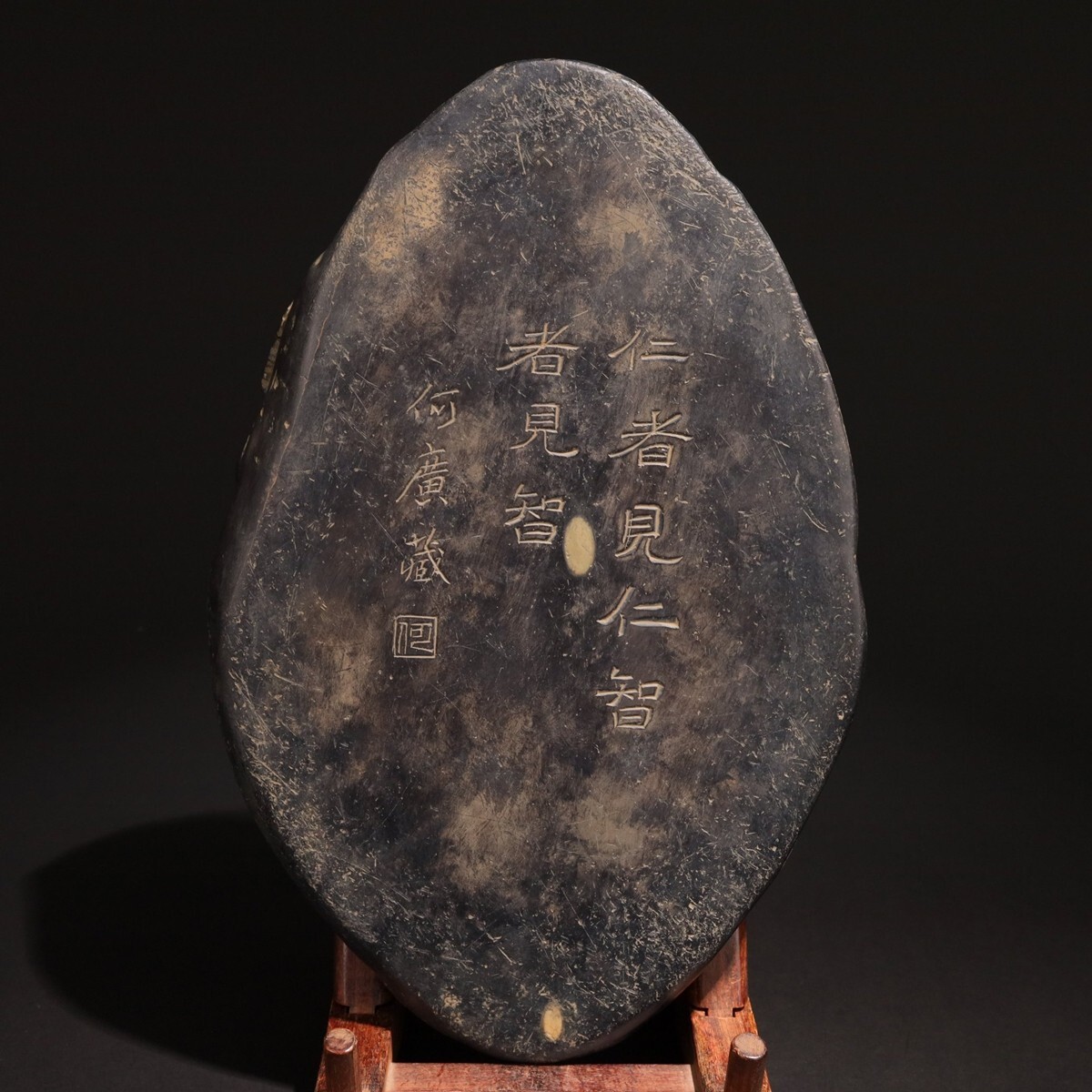 「梅花坑端石硯 多子多福文房端渓硯 何廣銘 清時代」手彫り 文房四宝 書道具 中国古美術 旧蔵出
