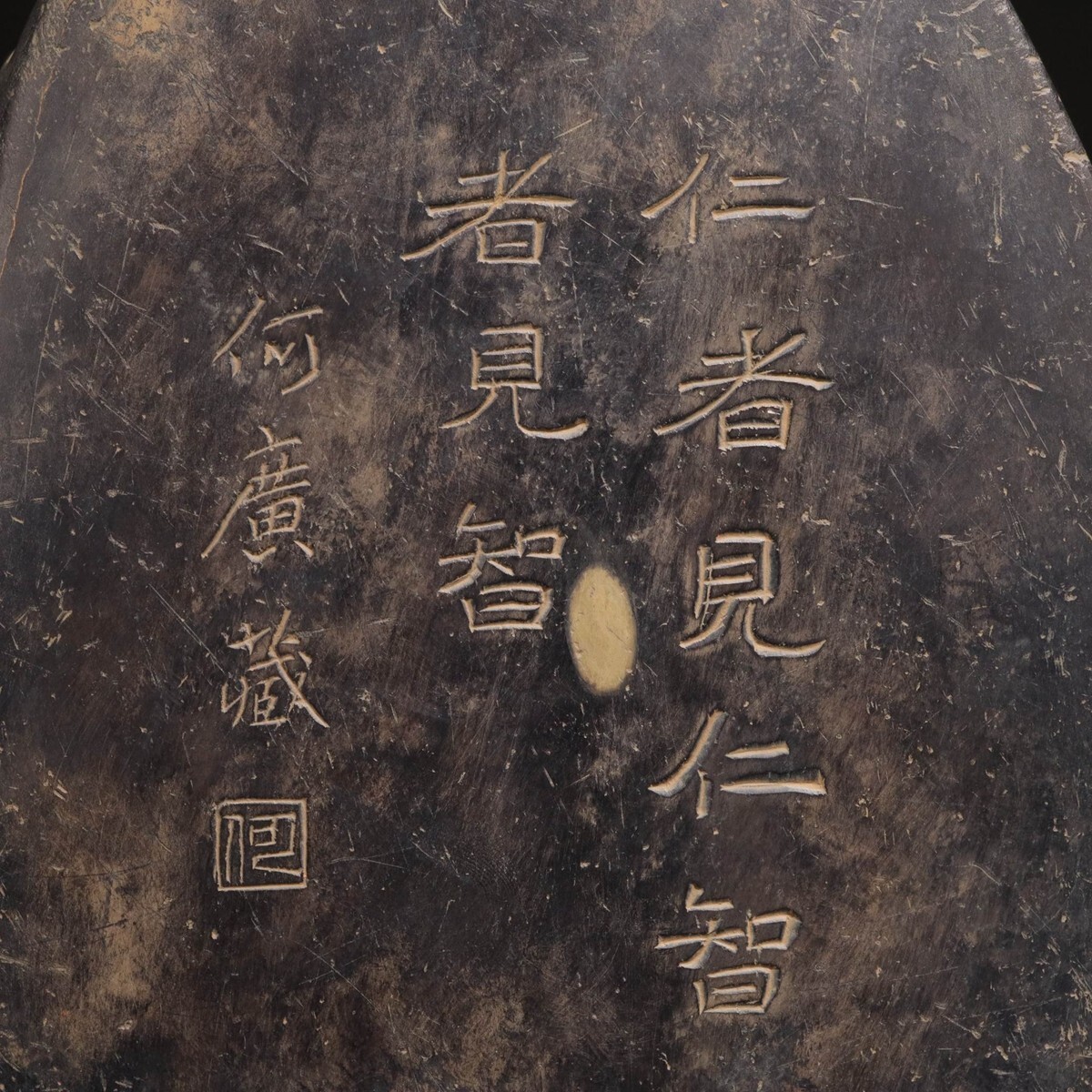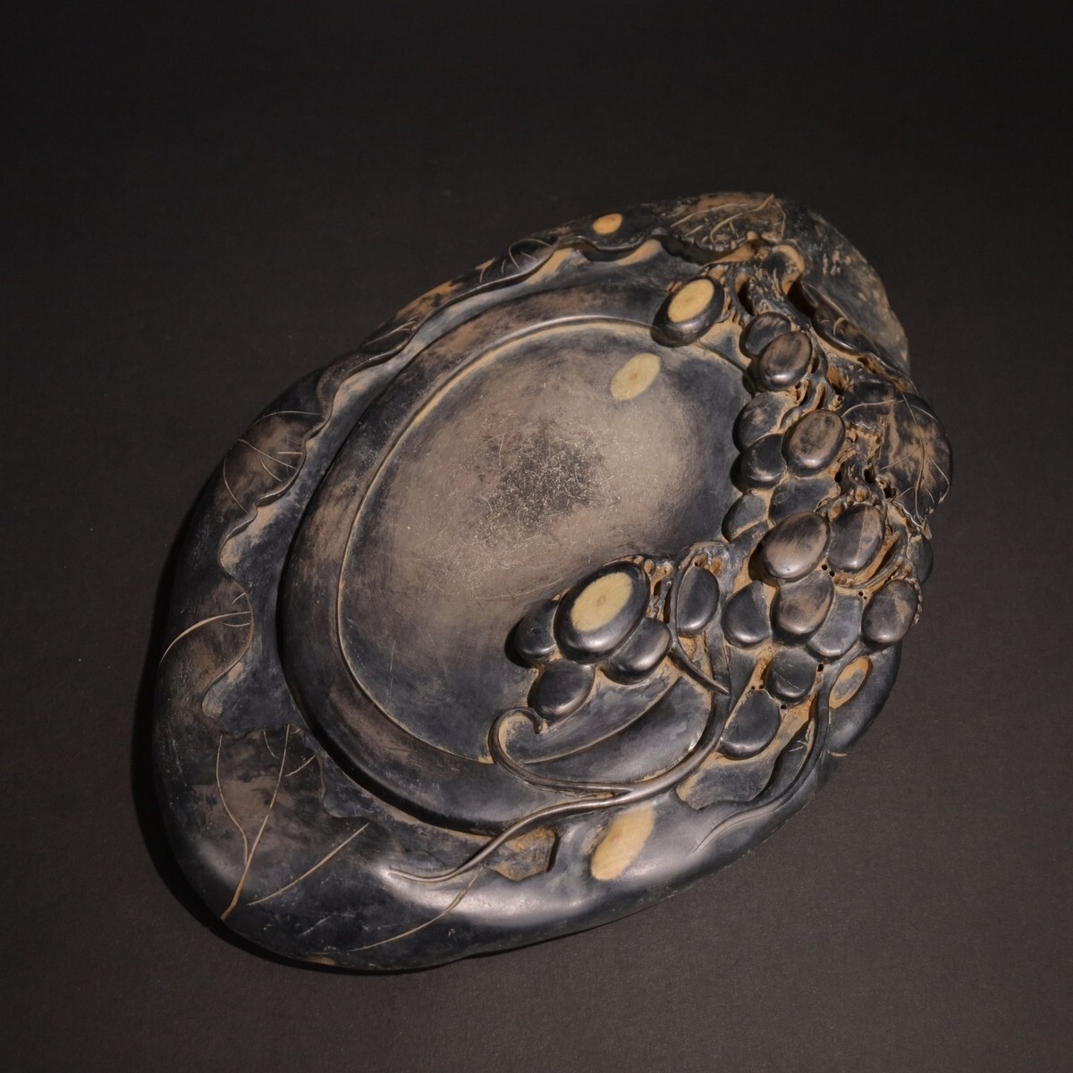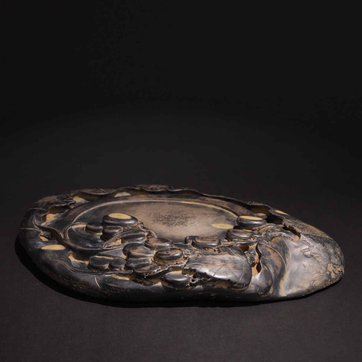 「梅花坑端石硯 多子多福文房端渓硯 何廣銘 清時代」手彫り 文房四宝 書道具 中国古美術 旧蔵出