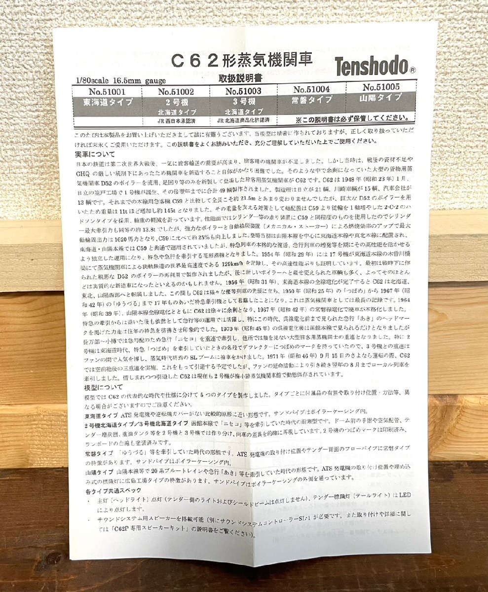 こちらは ■天賞堂 Tenshodo 51002 C62形 蒸気機関車 2号機 北海道タイプ 1/80 スケール HOゲージ 鉄道模型★になります。