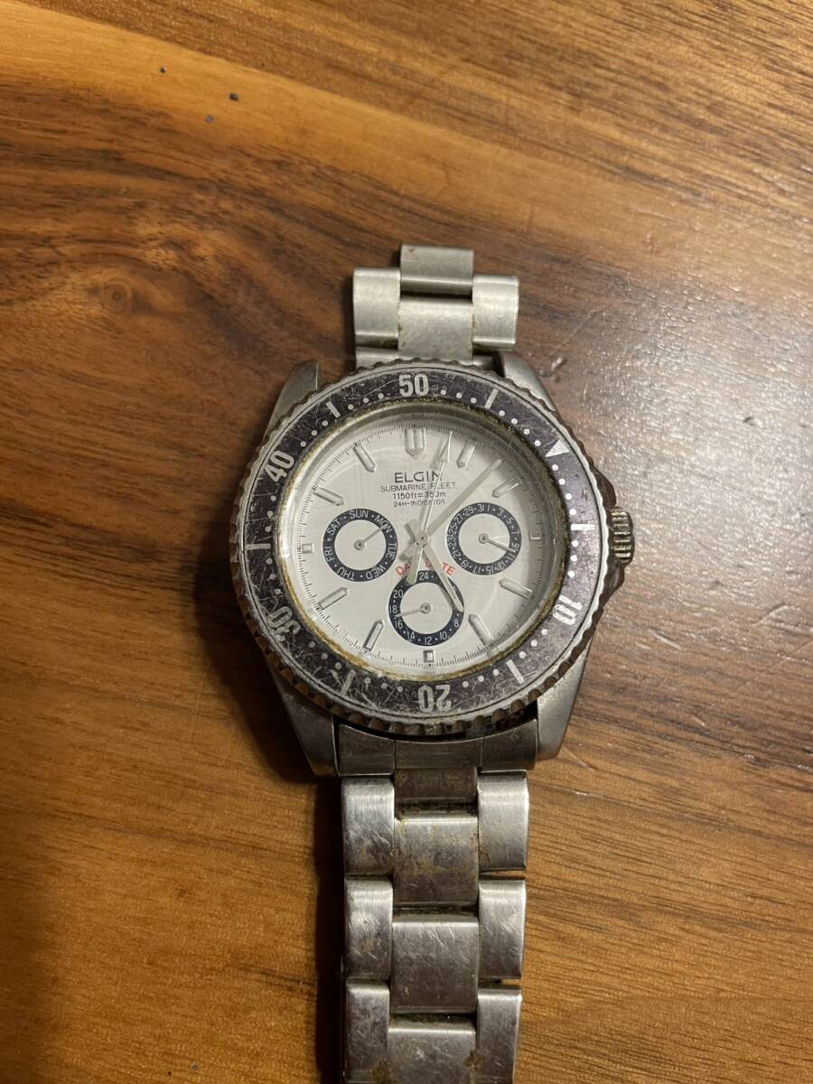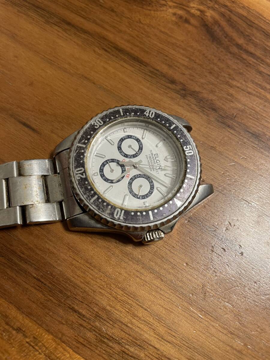 1円 524 ELGIN エルジン QZ クォーツ M-024-MA クロノグラフ 腕周り腕時計 メンズウォッチ 不動