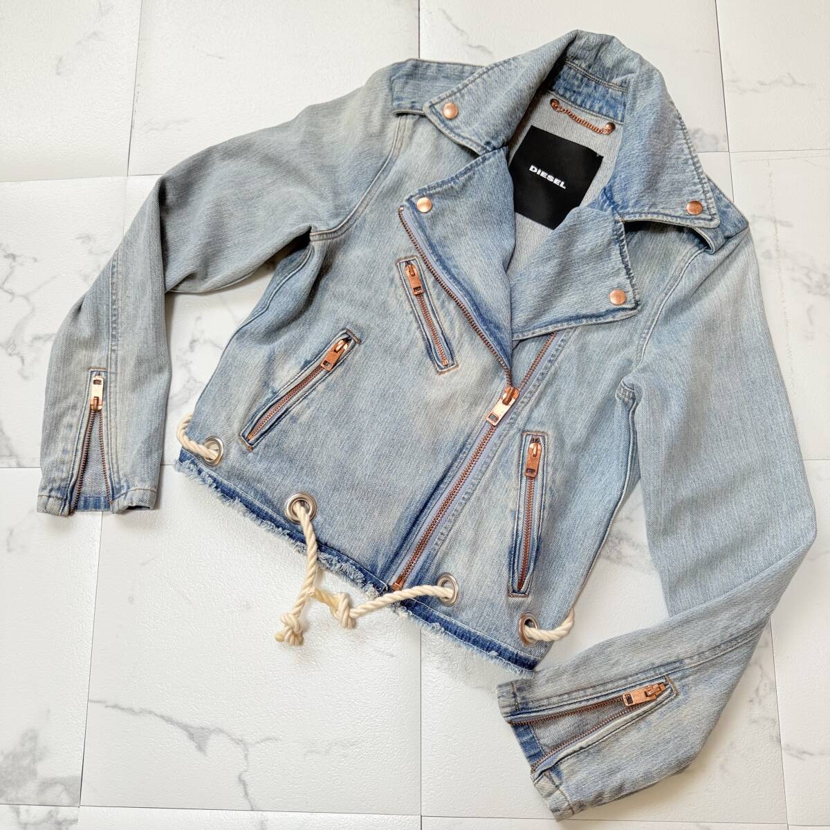 | ★ 商品名 ★ DIESEL ディーゼル デニムジャケット デニム ライダース ジャケット ショート丈 ライトデニム ロープベルト付 ★ |