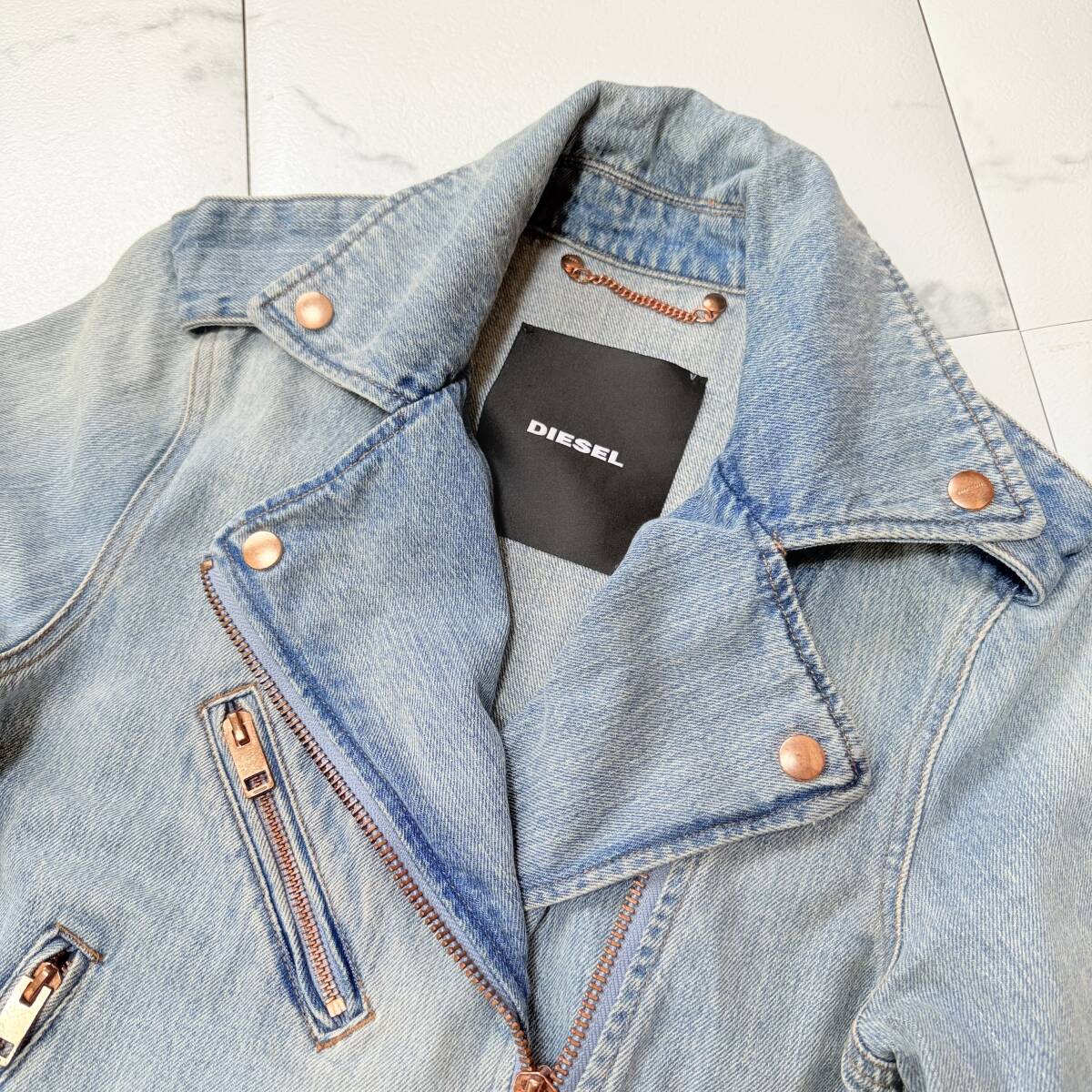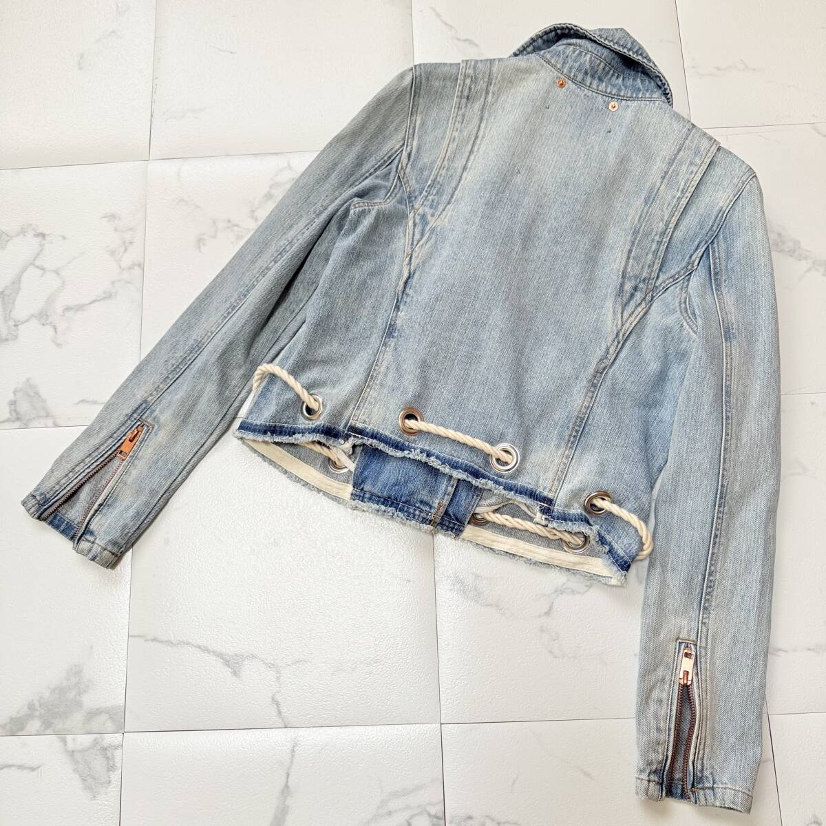 DIESEL ディーゼル デニムジャケット デニム ライダース ジャケット ショート丈 ライトデニム ロープベルト付になります。 ★品質 綿100% ★平置きサイズ 肩幅38㎝ 身幅45㎝ 着丈45㎝ 袖丈60㎝ 多少の誤差はご了承下さい。 ★状態 中古 目立つダメージ汚れなく、良い状態です。 中古品もご理解の上、ご検討頂けましたら幸いです。 | ||||||||