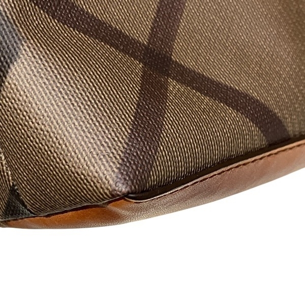 | 【ブランド】バーバリー 【ライン】スモークドチェック 【カラー】ブラウン×ブラック 【素材】PVC×レザー 【サイズ】H約11cm×W約19cm×D約6cm 【付属品】保存袋 【ランク】B (使用感あり) 【状態】 外側の状態:擦れ、汚れ、傷、型崩れ、小程度有り 内側の状態:汚れ、傷、小程度有り 金具の状態:汚れ、傷、小程度有り 付属品の状態:汚れ、シワ、小程度有り 毛羽立ち、中程度有り | |