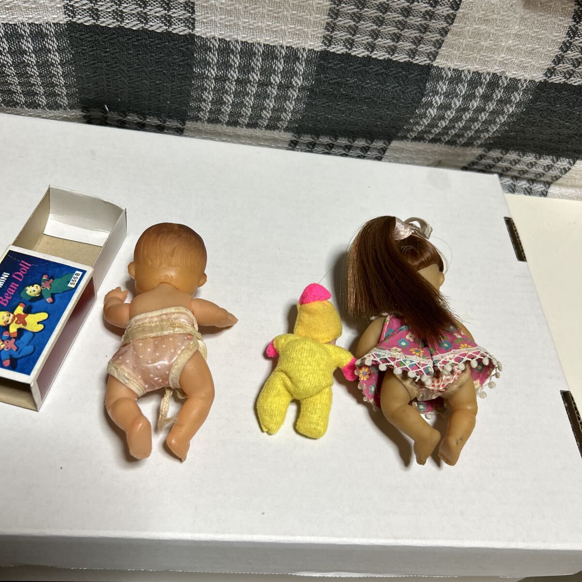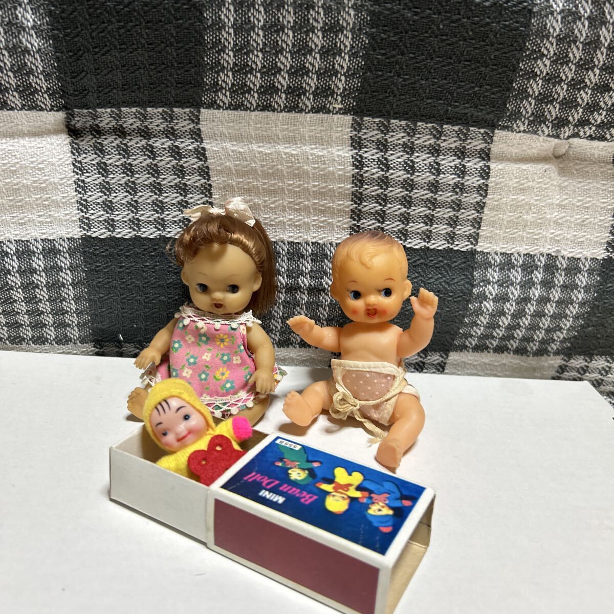 お座りで約10cmぐらい、マッチ箱人形は7cmぐらいです。