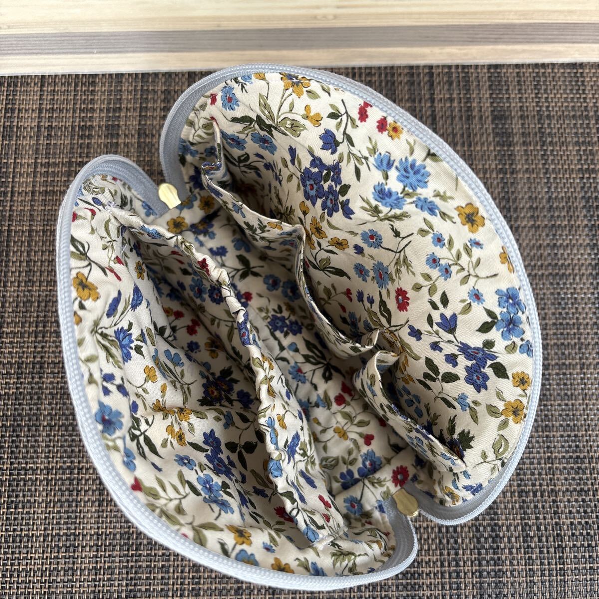 内ポケットと、リップやスティックコスメが入る仕切りを3箇所つけました。