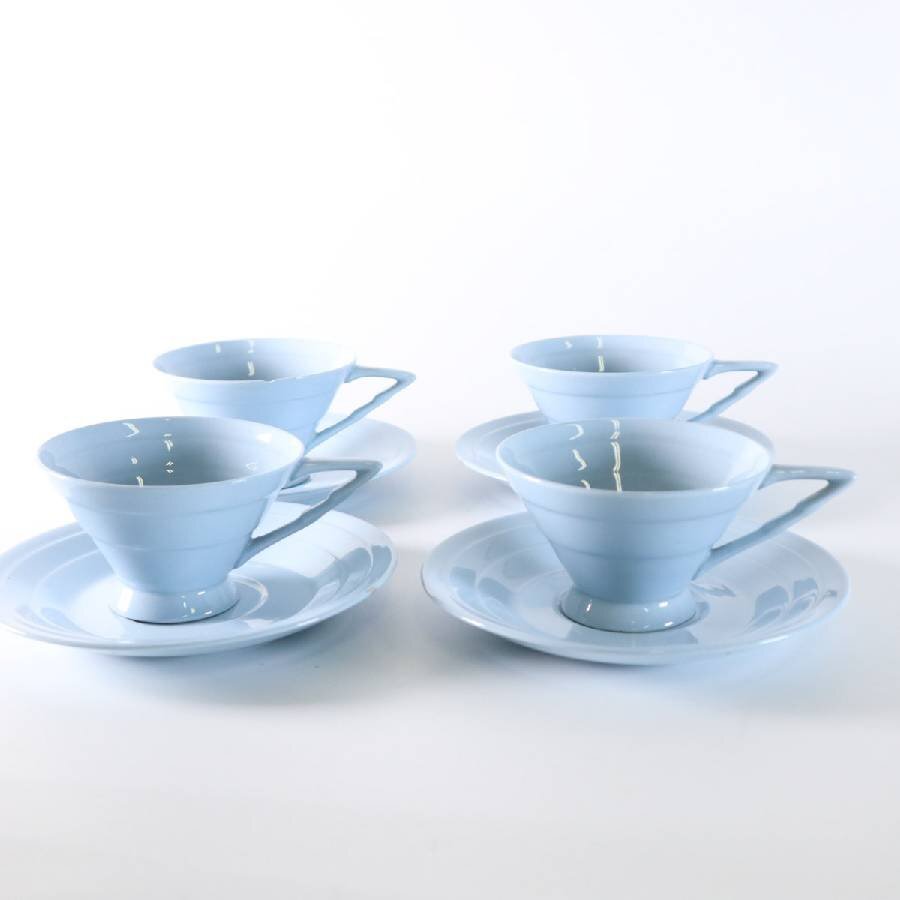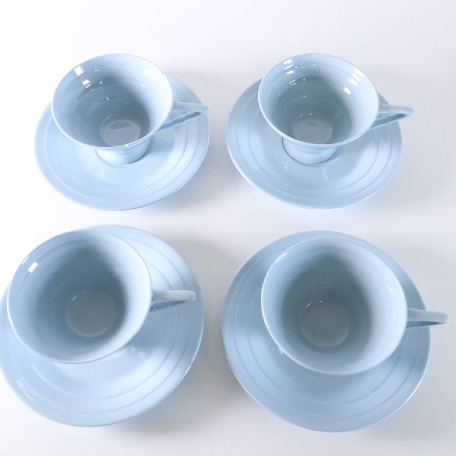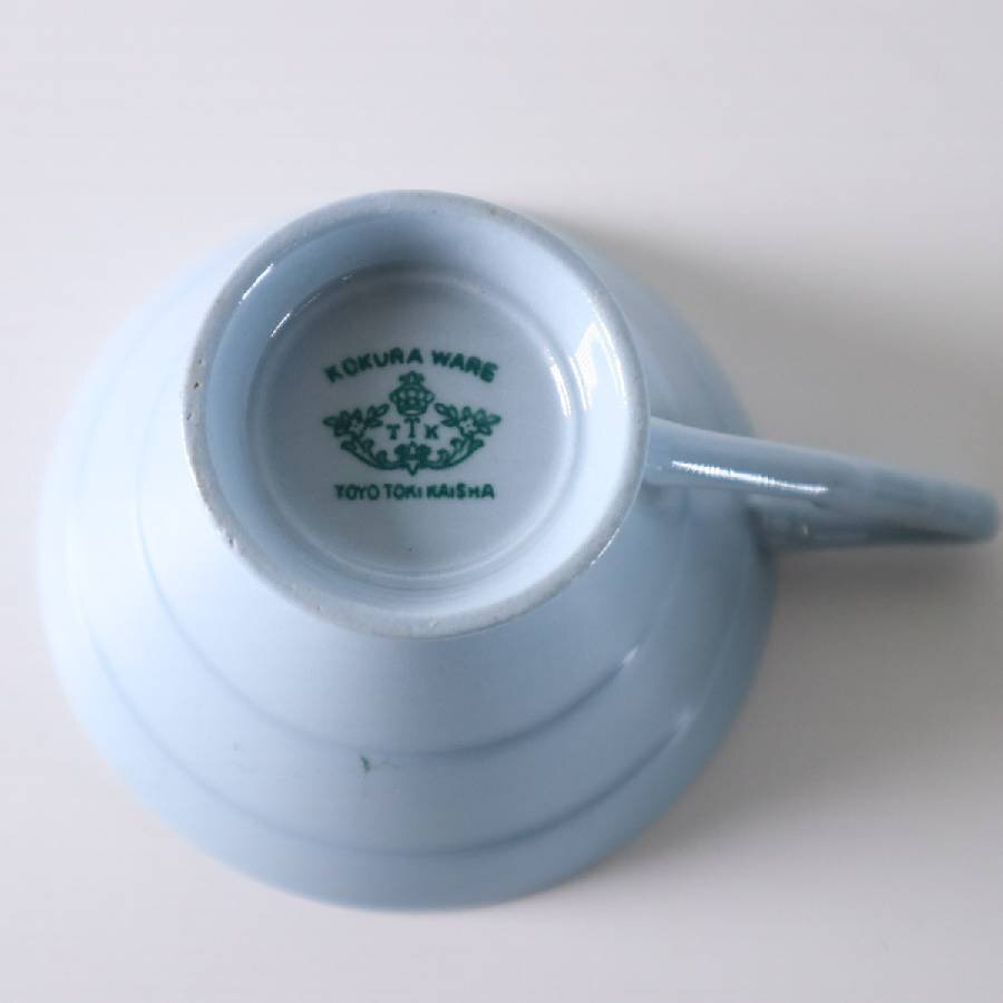 KOKURA WARE 東洋陶器会社 現TOTO カップ&ソーサー4客セット 水色 アールデコ レトロ★292h19