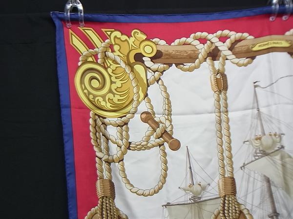 1円 ■美品■ HERMES エルメス Tribord 【帆船】 カレ90 シルク100% 大判 スカーフ ストール ショール ベージュ系×マルチカラー FU3097