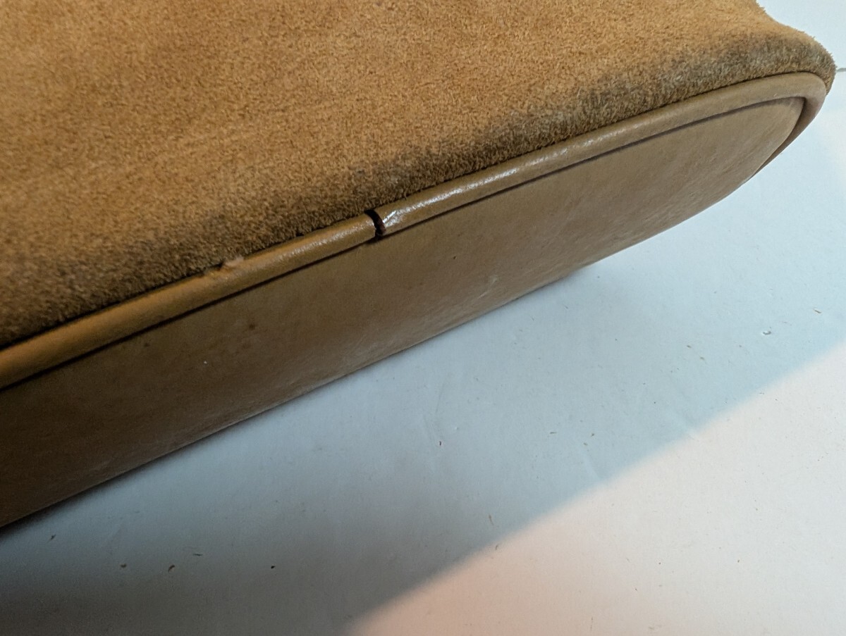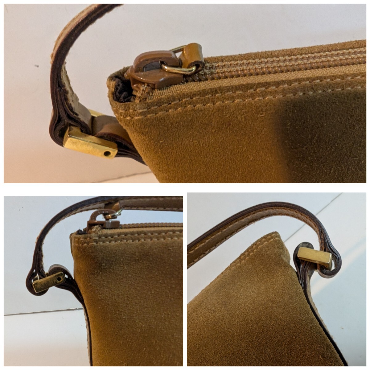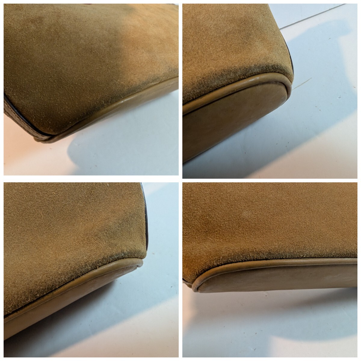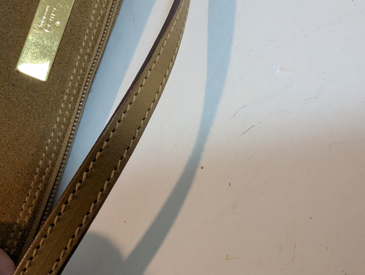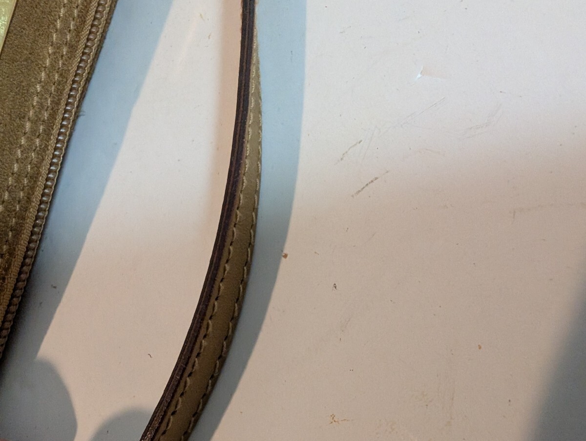 目立つよごれ見当たりません。すれや薄らよごれあります。画像にありますが下部のフチの一部に微小なワレあります。ファスナートップの革切れて取れてます。
