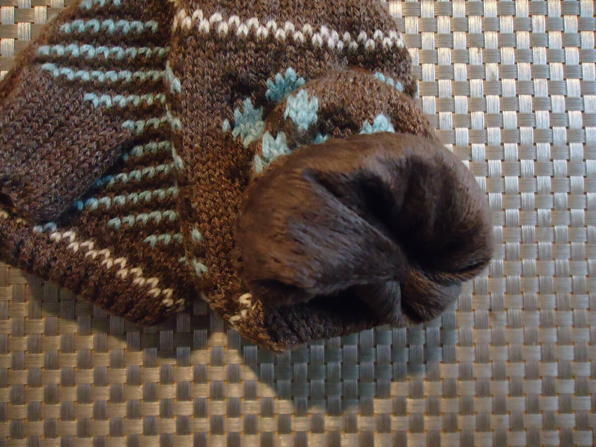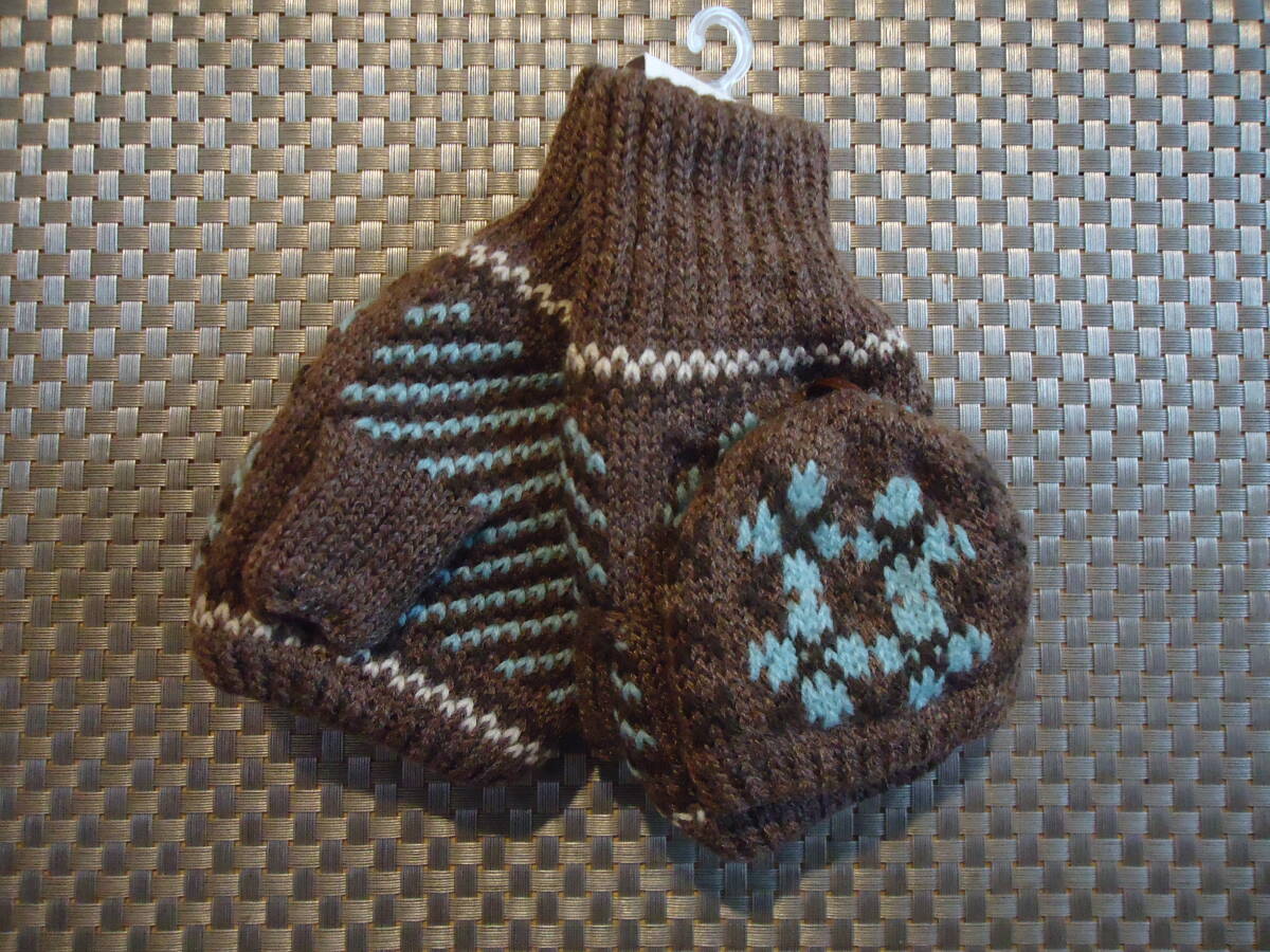 ★ニットフード付き指なし手袋★アーガイル柄★新品★ブラウン★