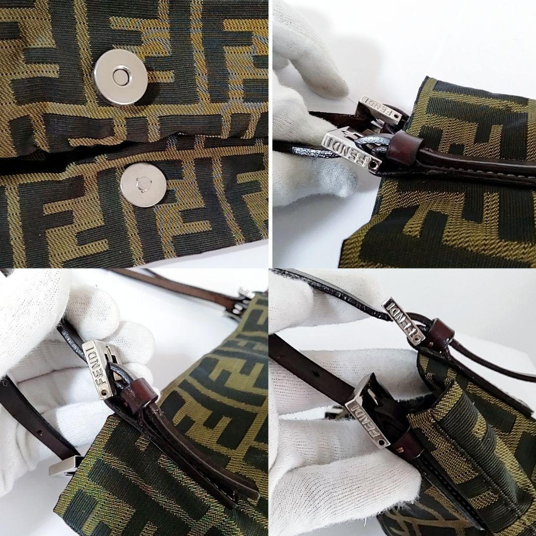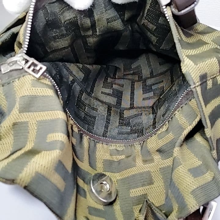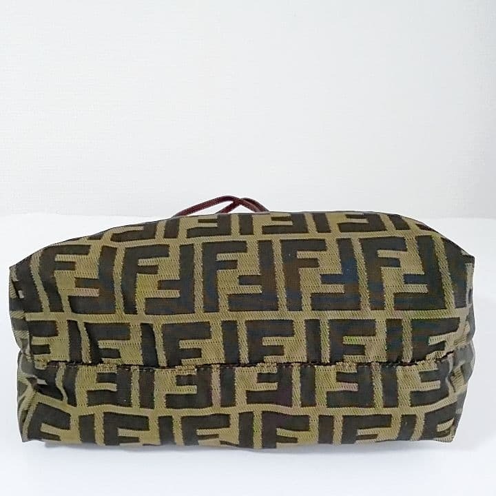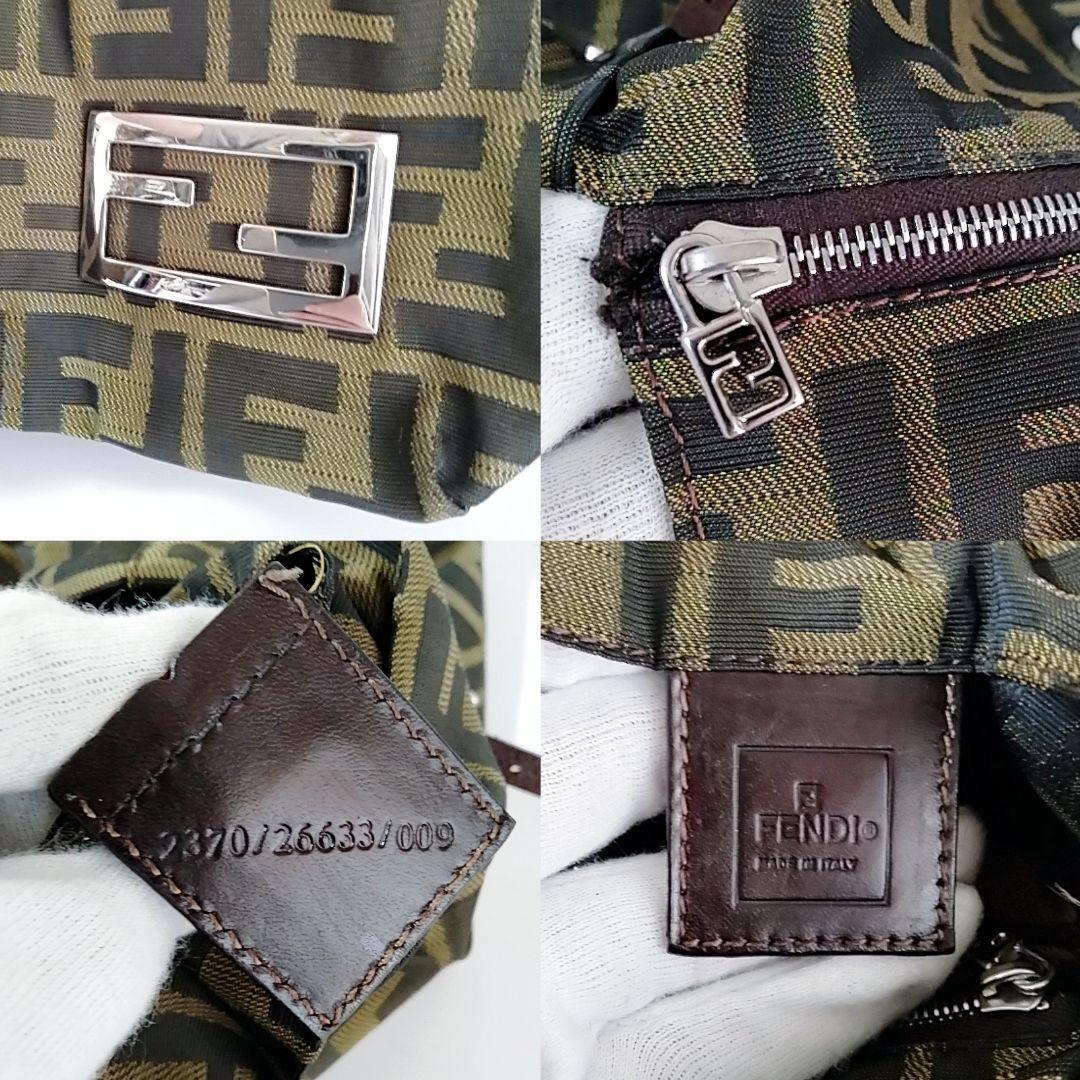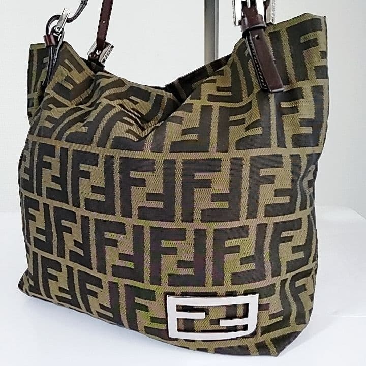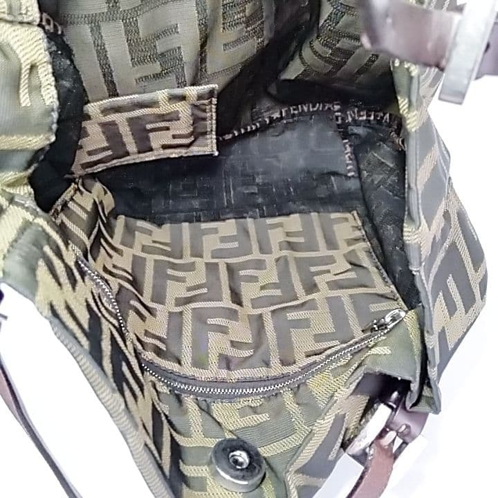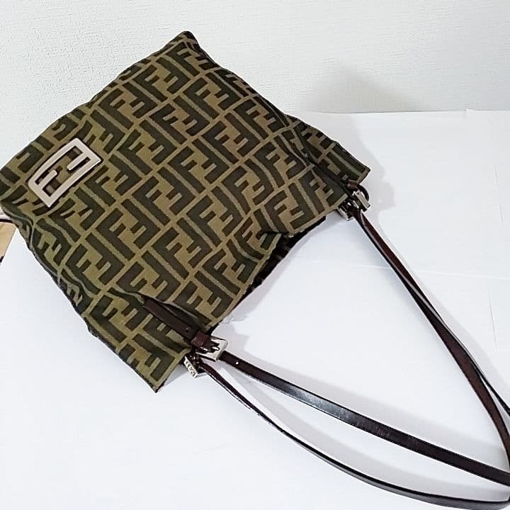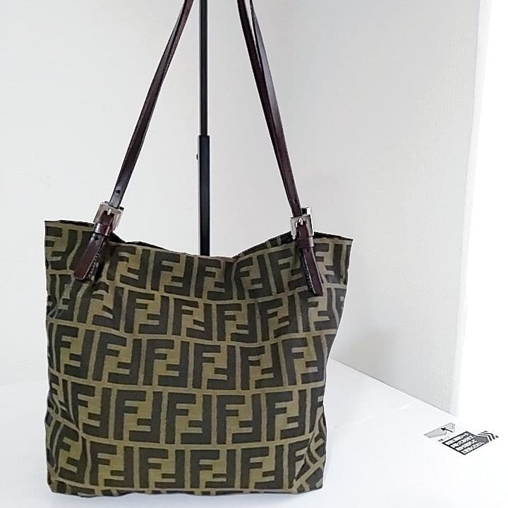 【超美品】FENDI ズッカ柄 トートバッグ オリーブグリーン FFロゴ キャンバス×レザー 肩掛け可