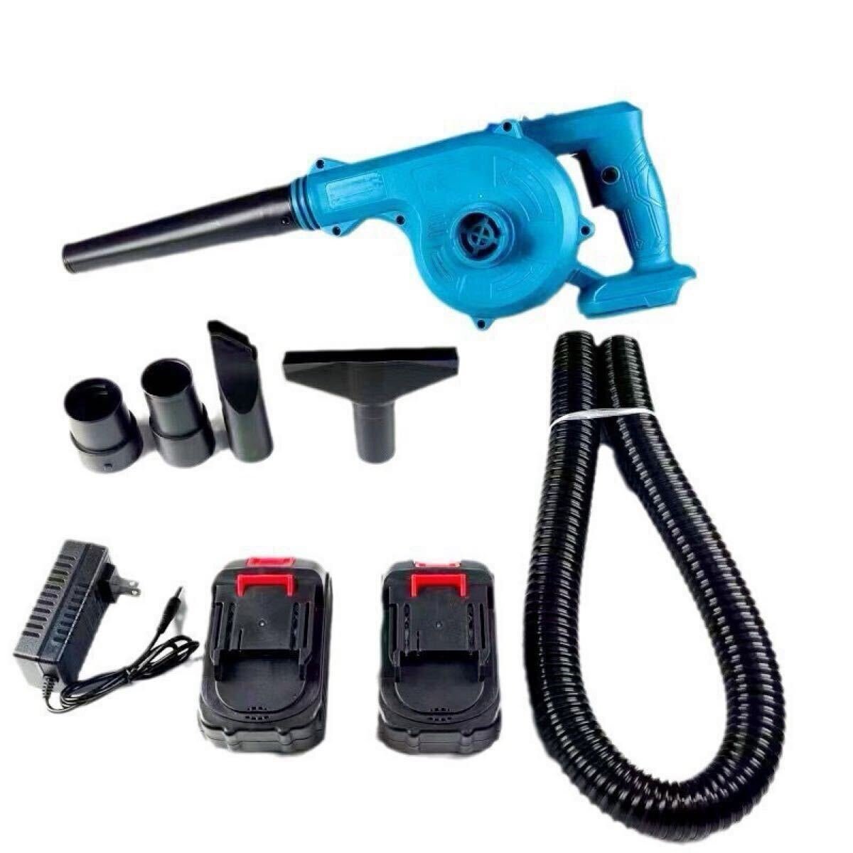 【パッケージ内容】:充電式ブロワー本体*1、ノズルA*1、ノズルB*1、ノズルC*1、延長チューブ*1、ダストバッグ*1、リチウムバッテリー*2、急速充電器*1英語の取扱説明書*1