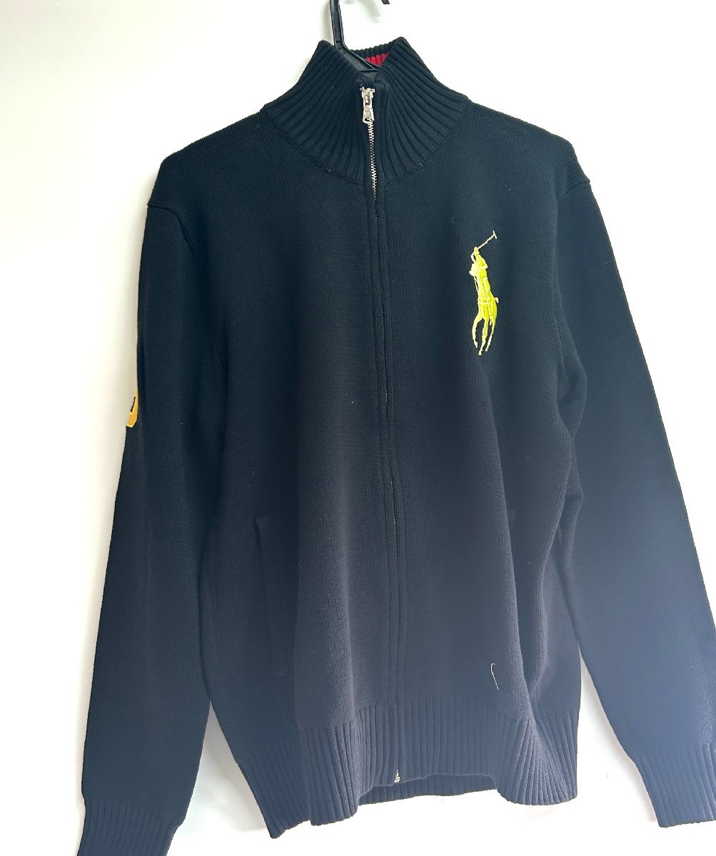 【和の美】 ★1円スタート★ ニットブルゾン ジャージ 黒 サイズM 100%コットン ブラック ポケット ジップ ブランド