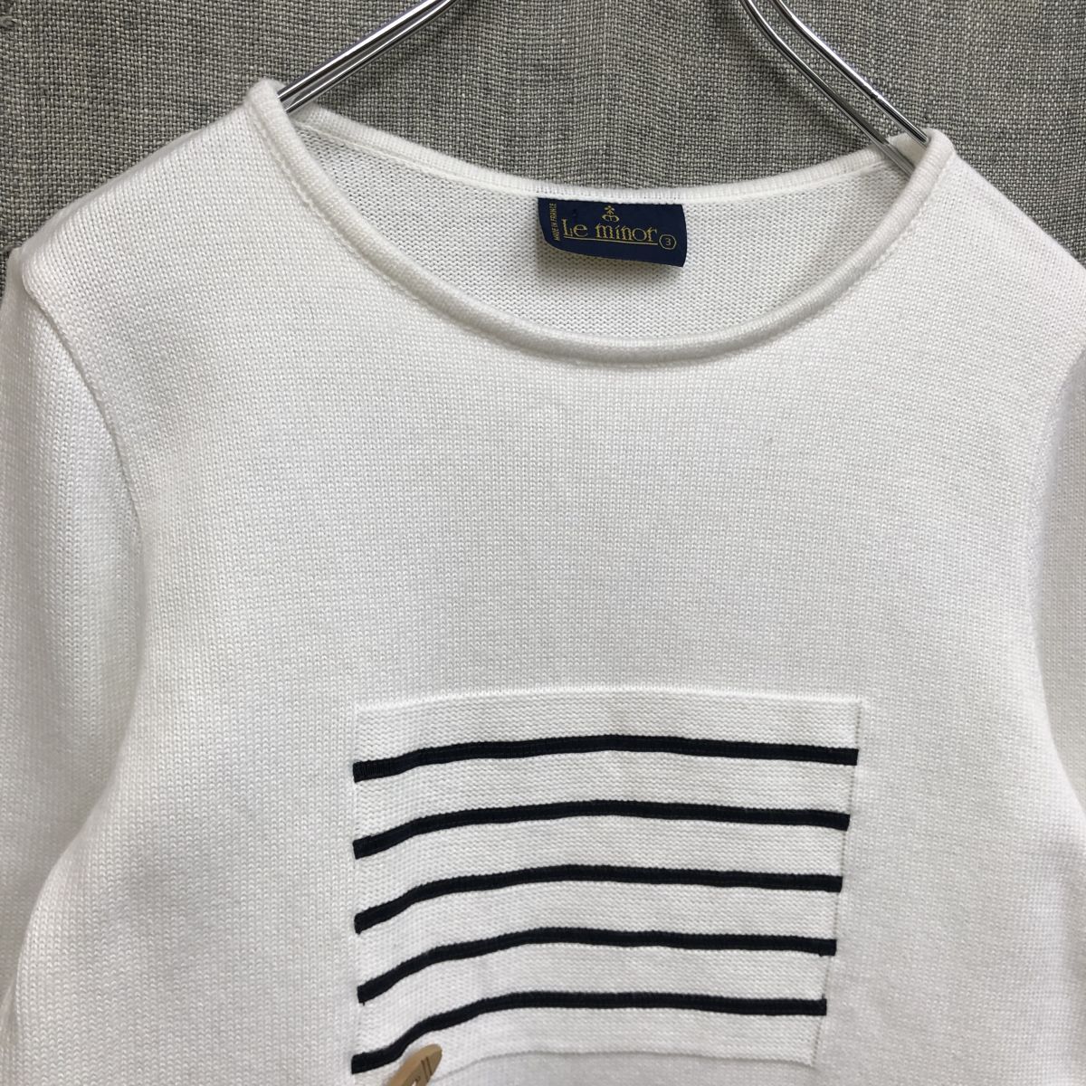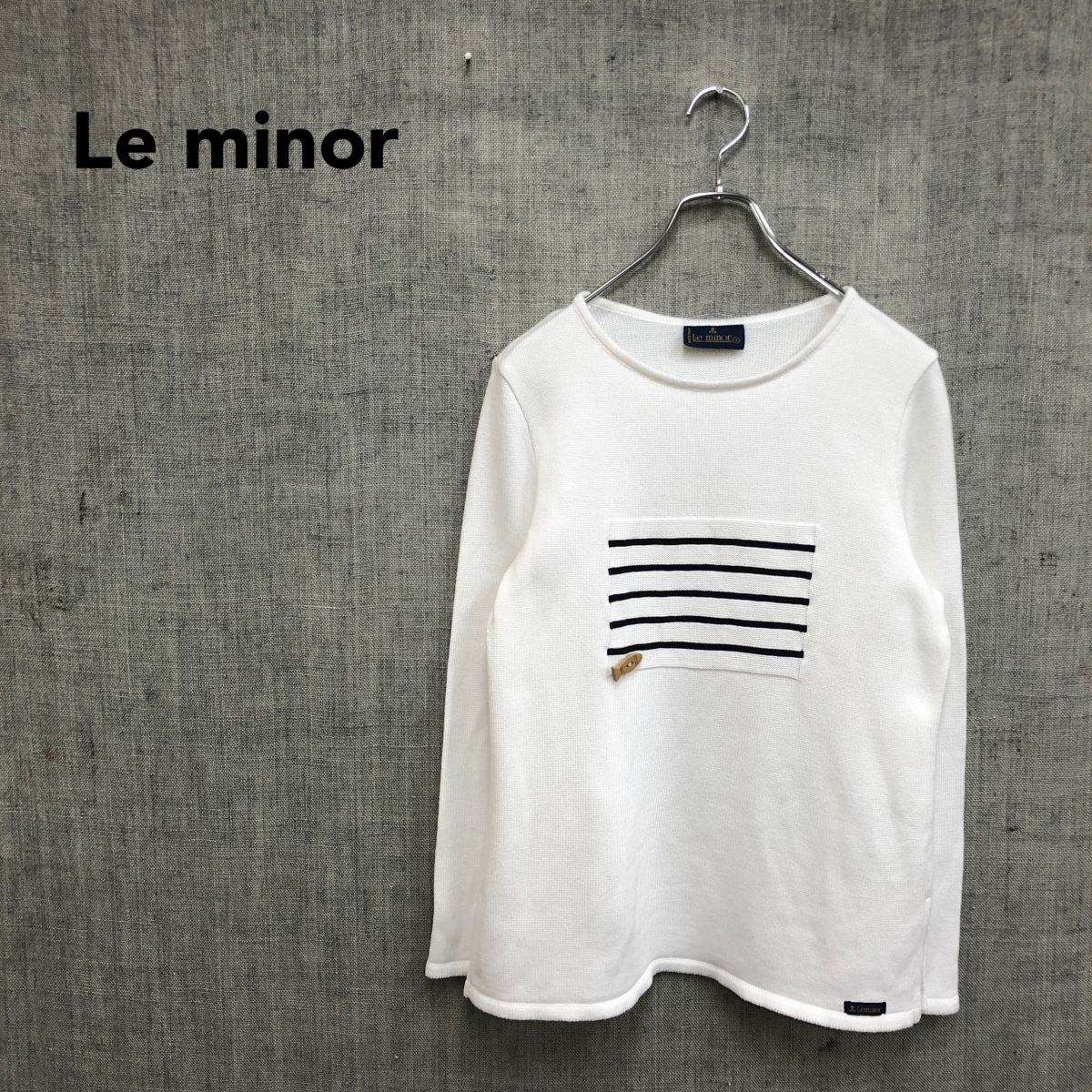2O3220-K◆フランス製 Le minor ルミノア 長袖ニットトップス◆size3 ホワイト ボーダー マリン サイドスリット 綿ブレンド カジュアル