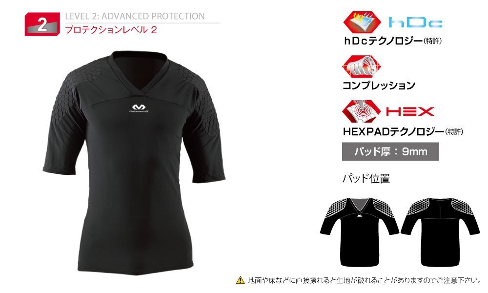 | 詳細 | 【商品名】 HEX GKシャツ 【サイズ(胸囲/cm)】 XS/74-84 S/82-92 M/90-101 L/99-110 XL/108-118 【カラー】 ブラック(BK) 【特長】 ●肩周辺をプロテクトするショートスリーブ ●コンプレッションタイプ ●hDc機能搭載(劣化しない吸汗・速乾機能) ●サッカー公式戦使用OK (但し、半袖ユニフォームを着用の際は袖の主たる色が黒色であること) ●UVカット 99%以上 ●プロテクションレベル2 主に9mm厚のパッドを使用し、保護性能と動きやすさをバランス良く兼ね備えた上級モデル。 |