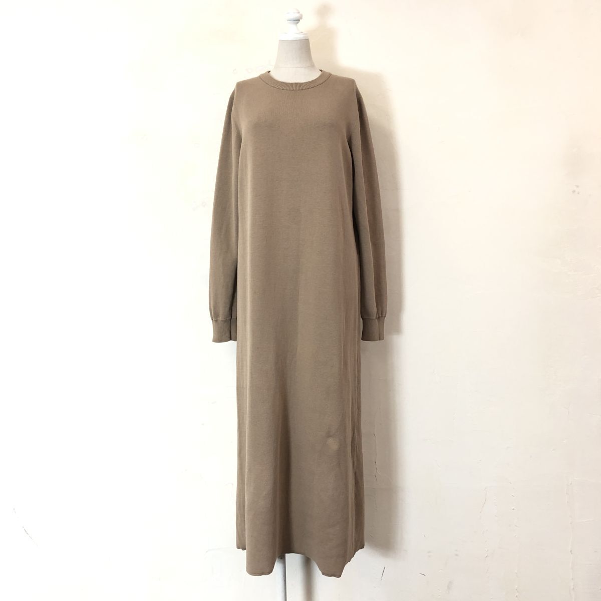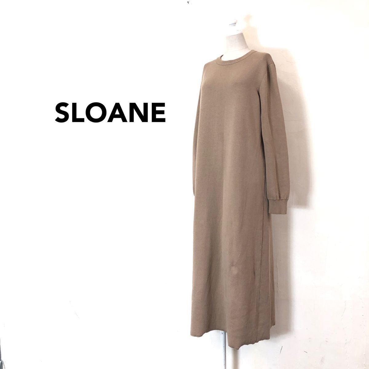 2O3420-Y◆SLOANE スローン クルーネックニットワンピース ロング 無地 リブ スクエアヘム レディース カジュアル ◆size2 ブラウン 綿