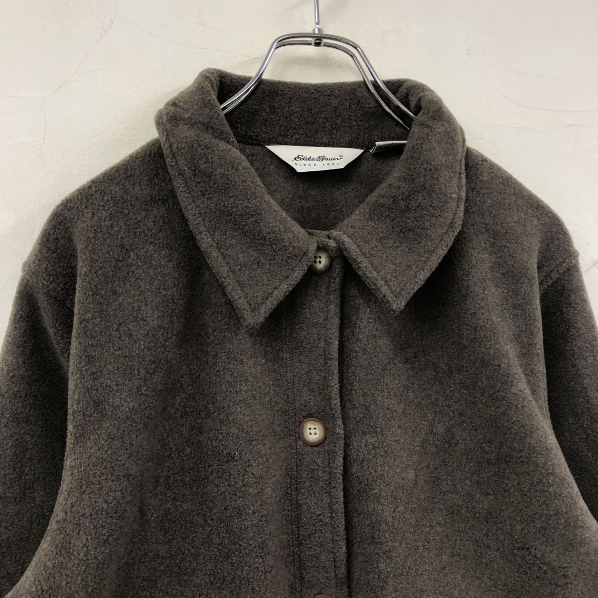 2O3391-K◆良品 Eddie Bauer エディーバウアー フリース長袖シャツジャケット◆sizeM ブラウン 無地 クロップド 軽量 暖か アウトドア