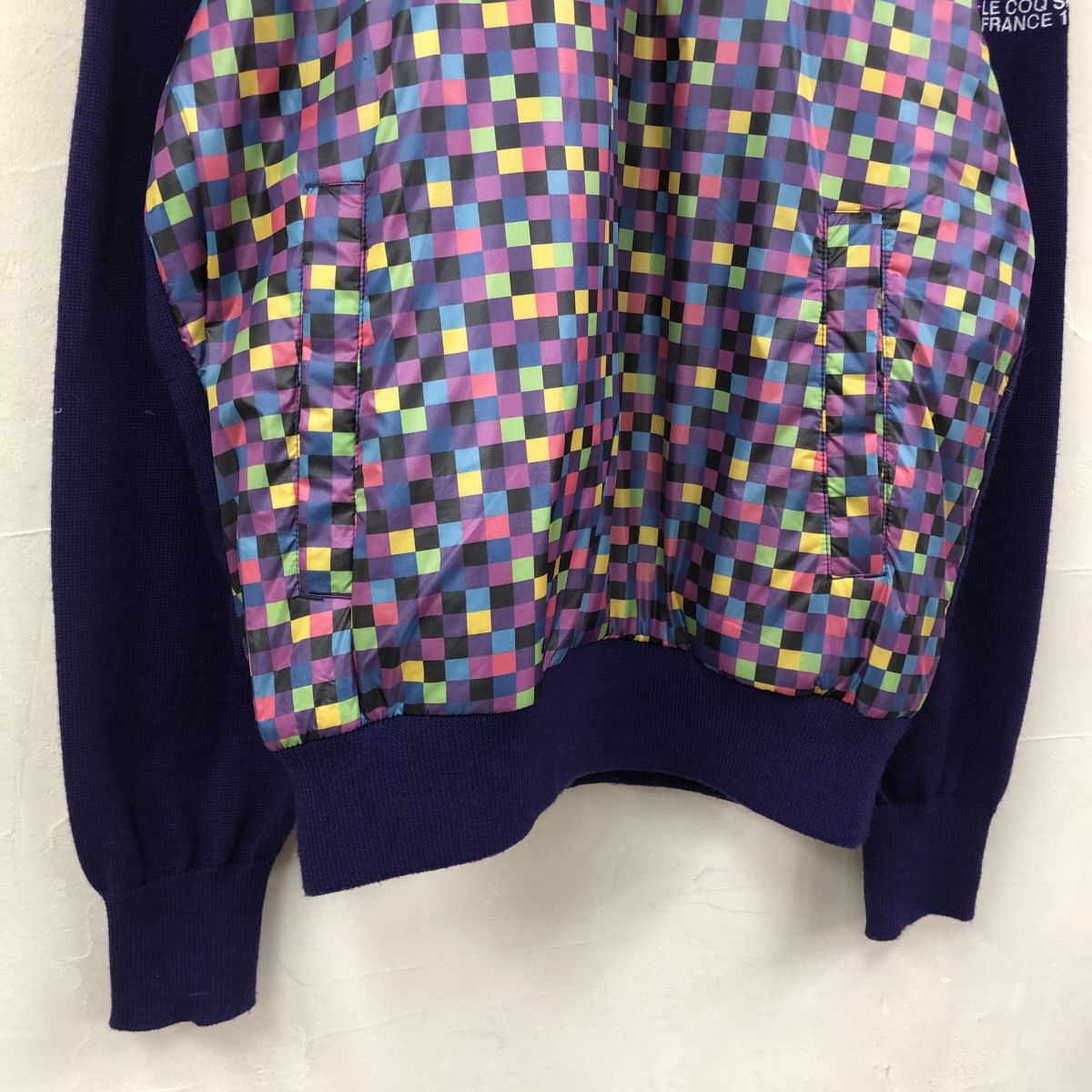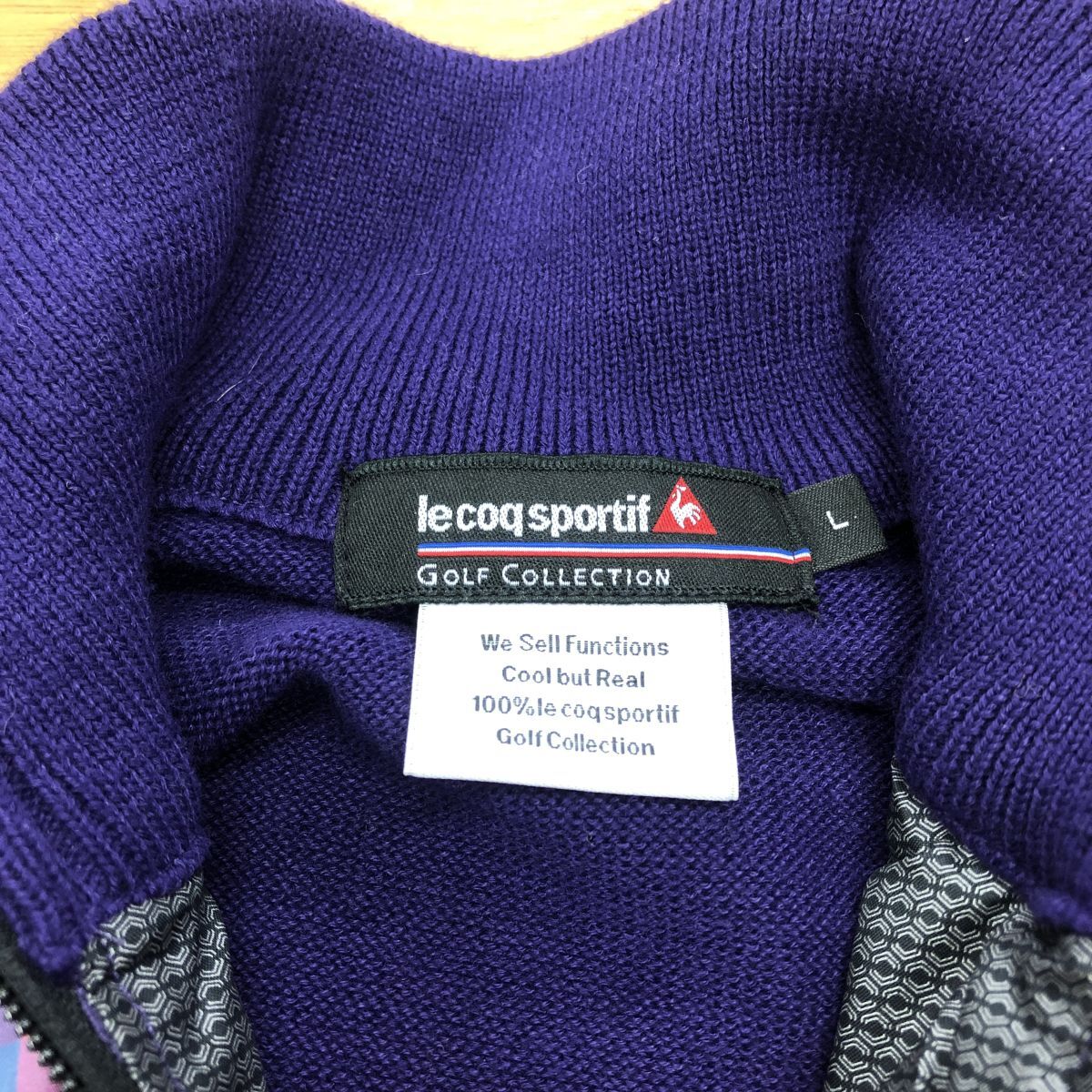 2O3365-K◆le coq sportif ルコックスポティフ ハーフジップ長袖ニットトップス◆sizeL パープル チェック柄 ゴルフウエア プルオーバー