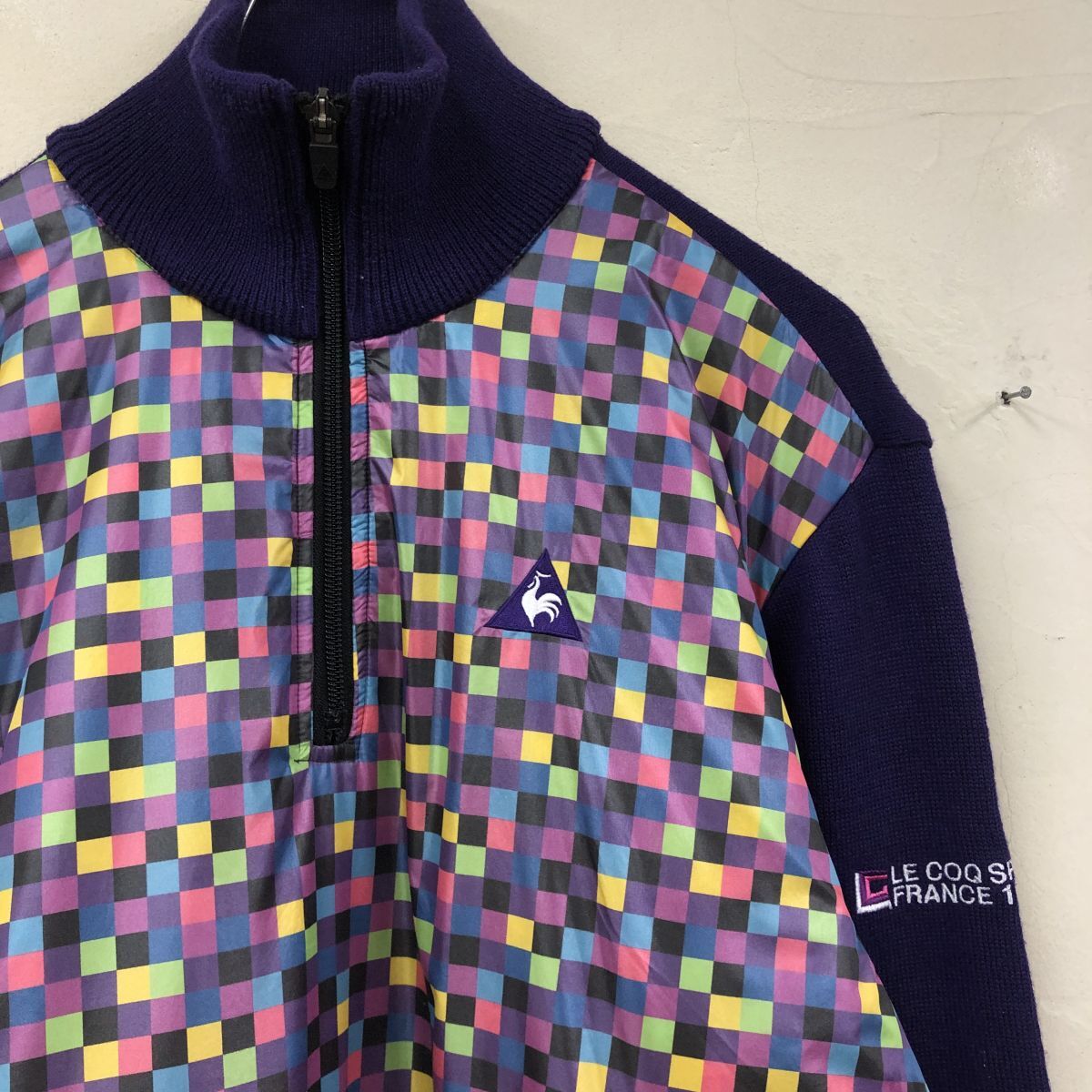 こちらルコックスポティフのハーフジップ長袖ニットトップスです。