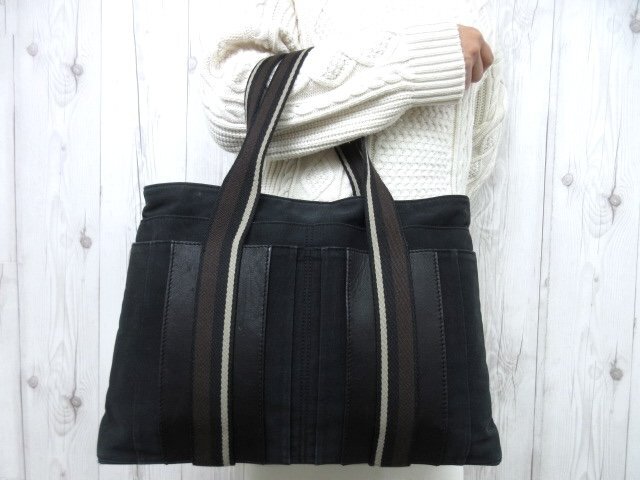 | 美品 HERMES エルメス トロカホリゾンタル MM トートバッグ ハンドバッグ バッグ キャンバス×レザー 黒系 A4収納可 メンズ 91433Y | ||