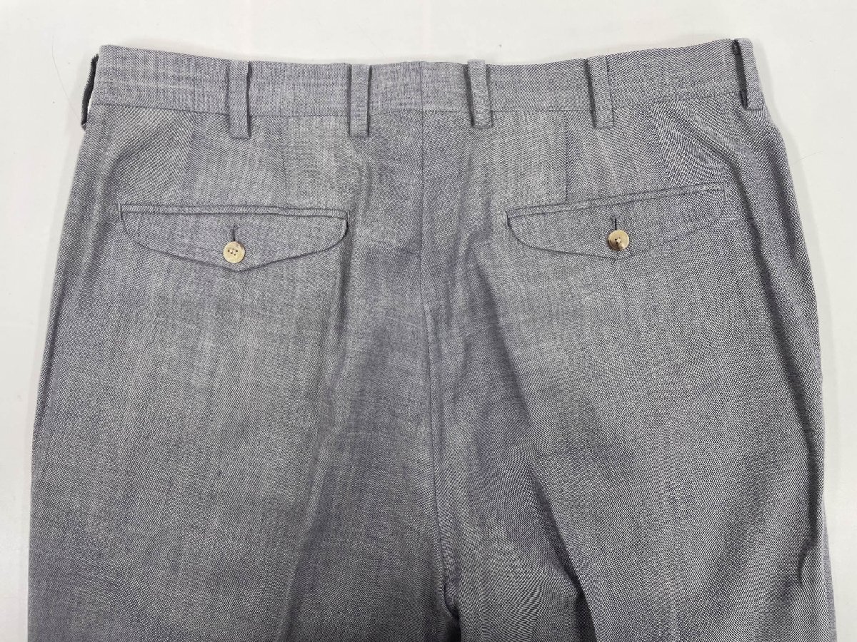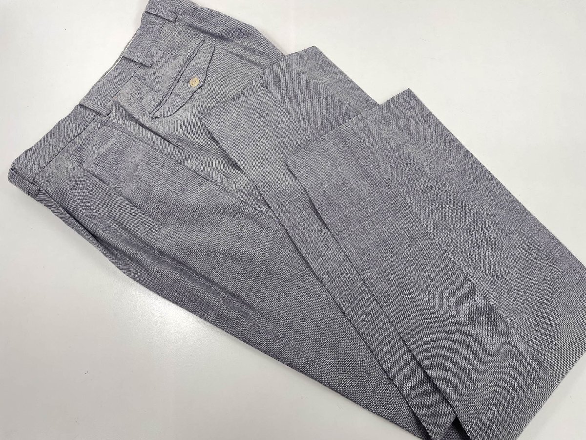 ・スラックス・・・ウエスト実寸約84センチ(2センチ出し、2センチ詰め可能)、股上約28センチ、渡り幅約34センチ、股下約78センチ、総丈約104センチ、裾幅約20センチ、シングル仕上げ(最大でプラス6センチ長くできます)