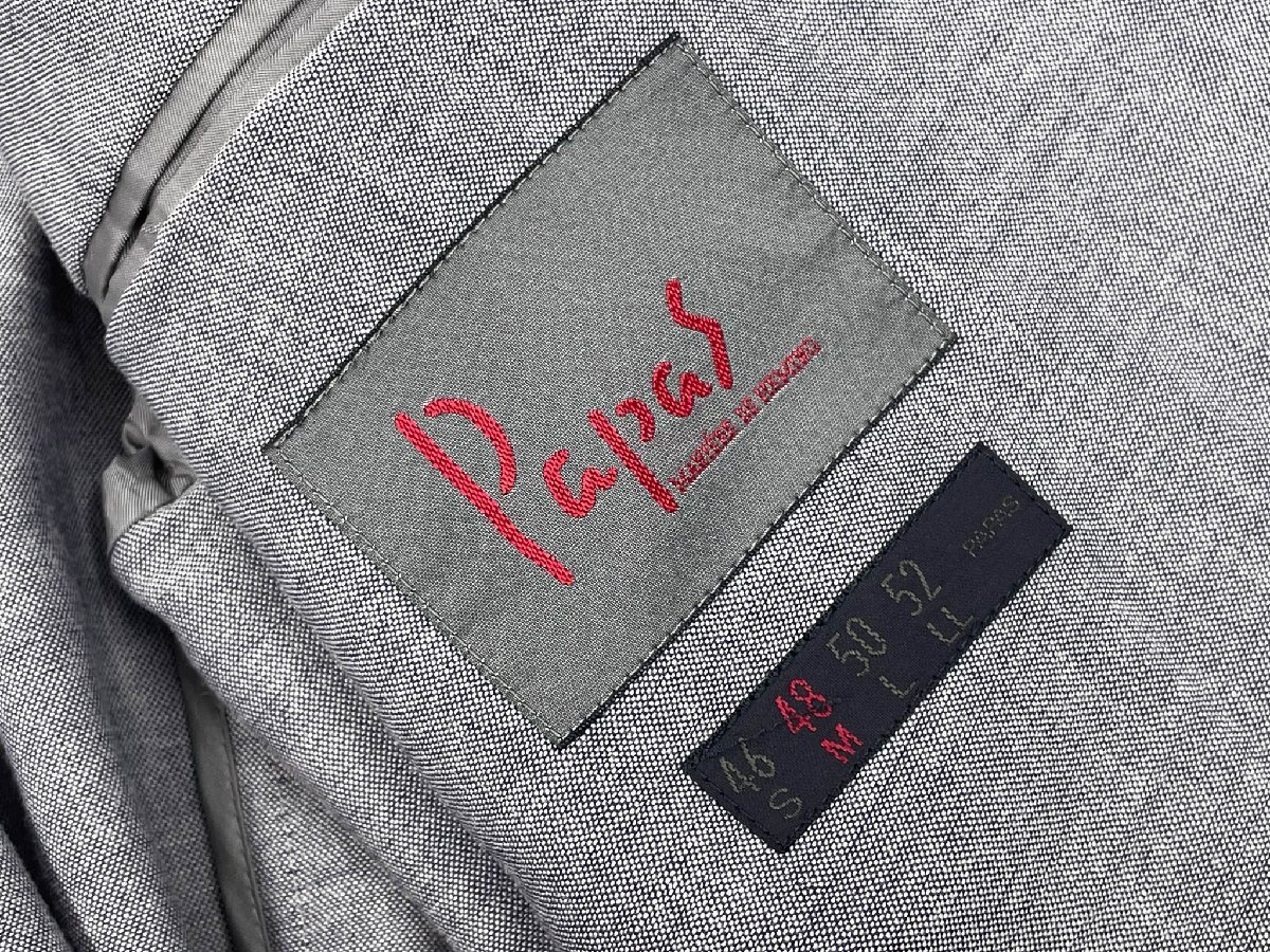 超美品【パパス PAPAS】 D0431FJ 008 シングル3ボタン段返りスーツ (メンズ) size48/50 グレー系 織柄 ◇33RMS2795◇