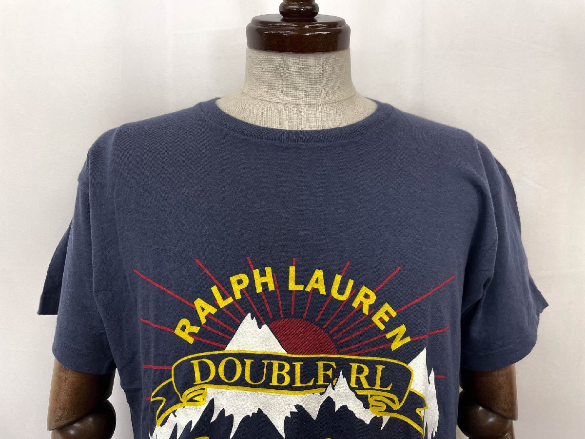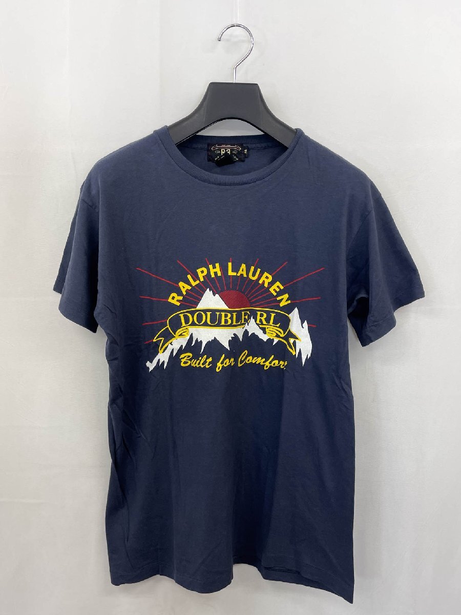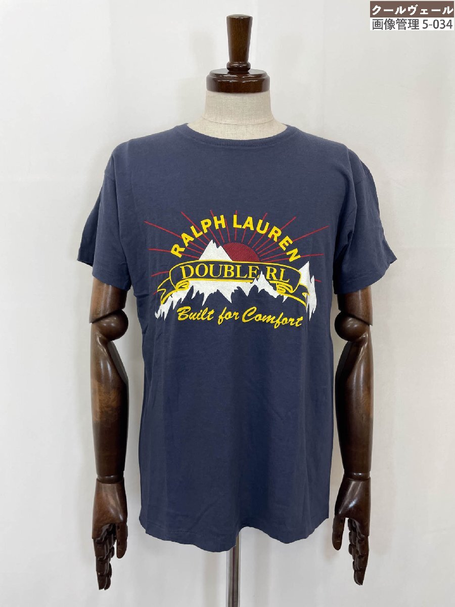 超美品【RRL ダブルアールエル】 コットン100% クルーネック プリント半袖Tシャツ (メンズ) sizeM ネイビー系 ◇33MT6473◇