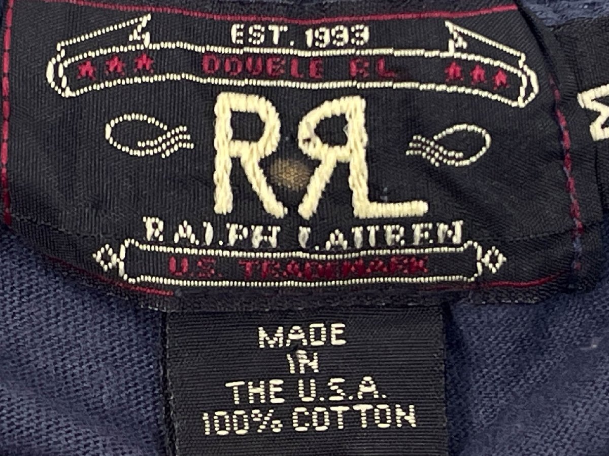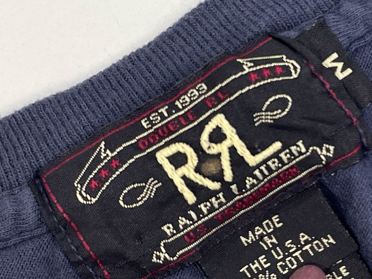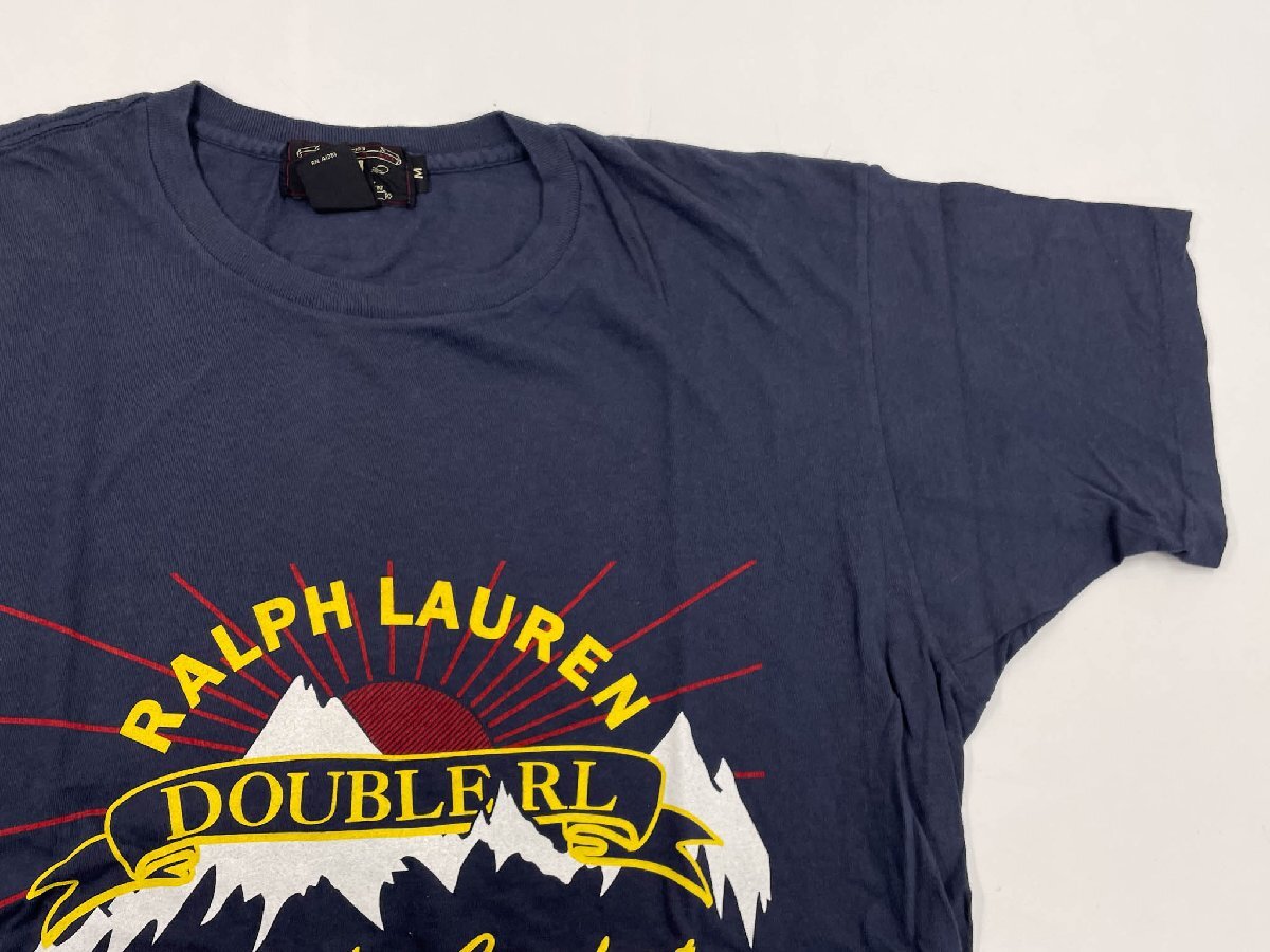 超美品【RRL ダブルアールエル】 コットン100% クルーネック プリント半袖Tシャツ (メンズ) sizeM ネイビー系 ◇33MT6473◇