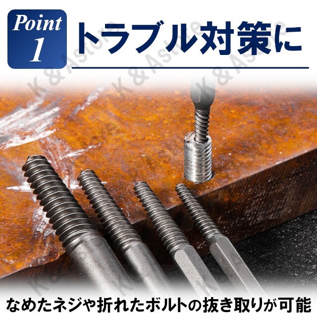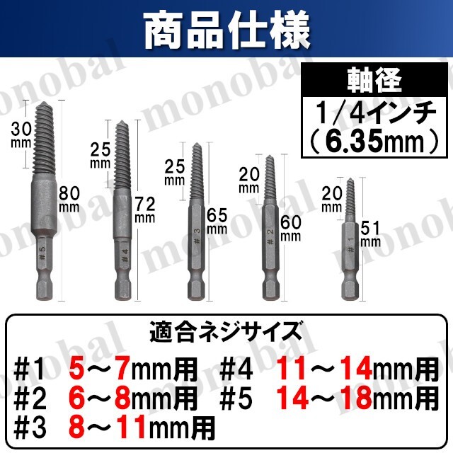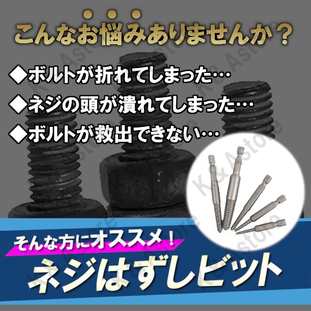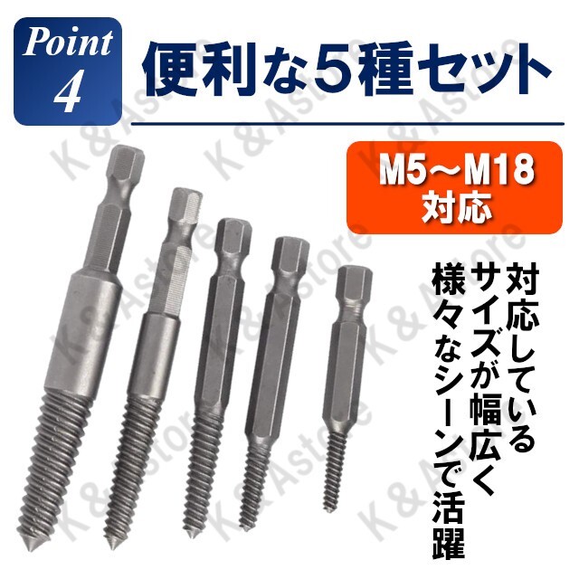 ネジ外し ビット 工具 エキストラクターセット スクリュー 逆タップ ねじはずし ボルト インパクト ドライバー ドリル 六角軸 5本セット