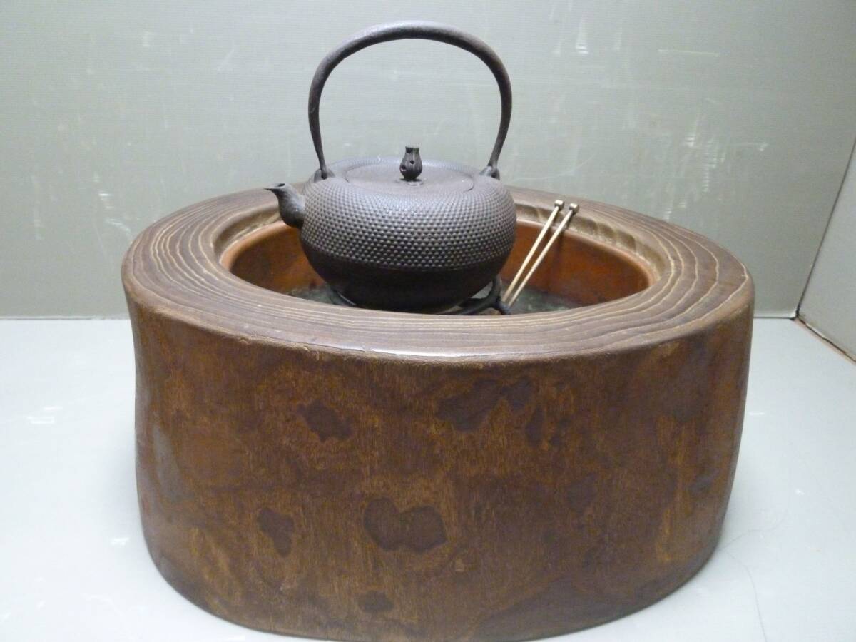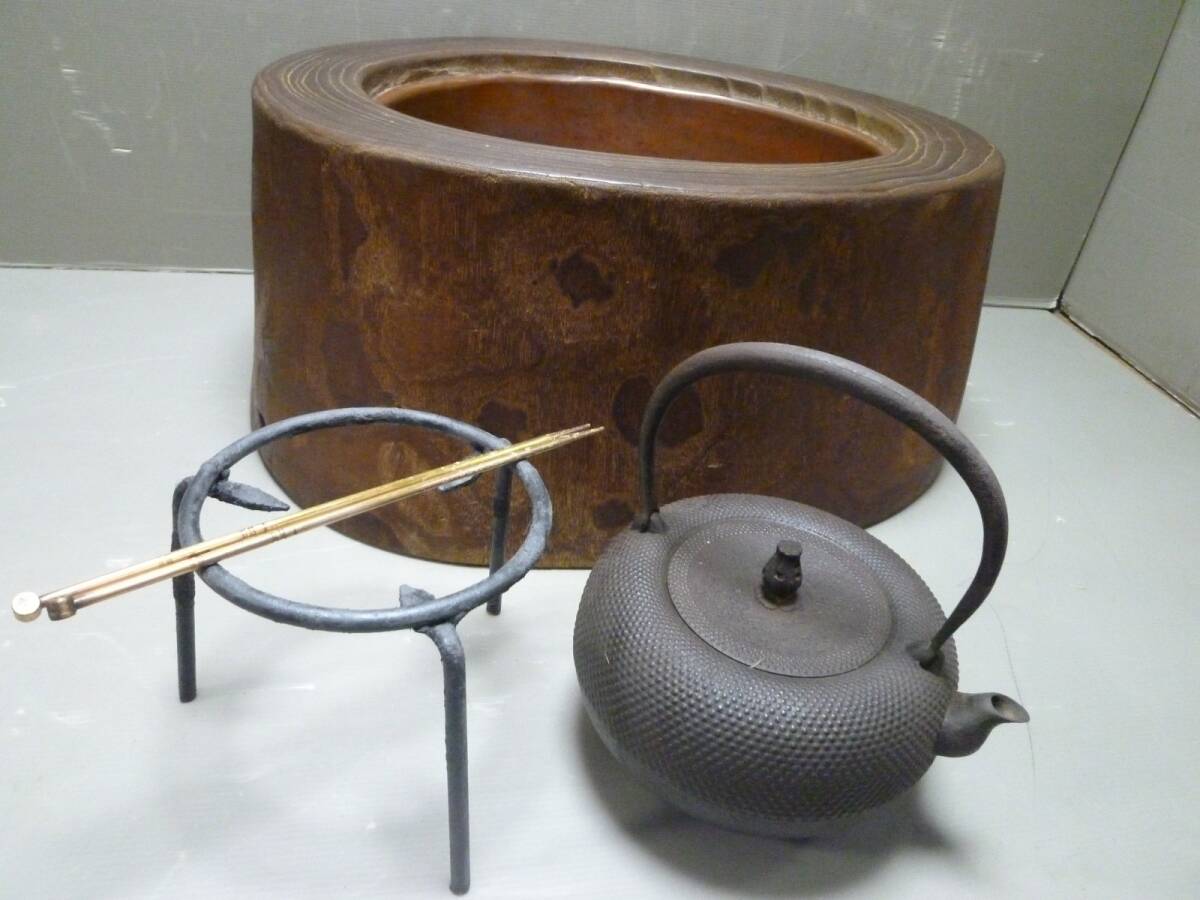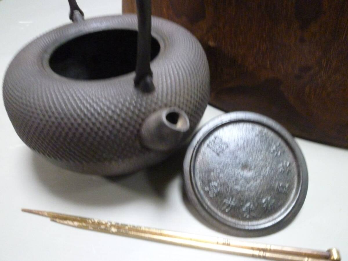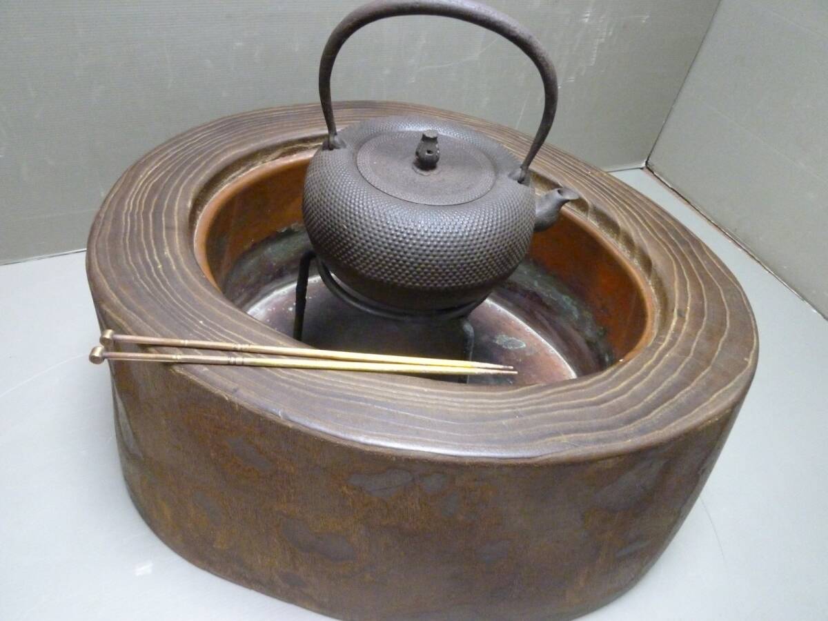 | 42×52センチ丸変形高さ24.5センチセンチ赤銅落とし27.5×35.5せ深さ15センチ緑青汚れあります.総重量10kg 鉄五徳 真鍮火箸 18センチ丸あられ鉄瓶付き 鉄瓶蓋裏に贈記念銘あります. 経年使用胴周り当たり傷擦れありますがご覧のように状態は概ね良好画像が全てです.宅急便140サイズ¥2630~¥4030の発送です. | ||