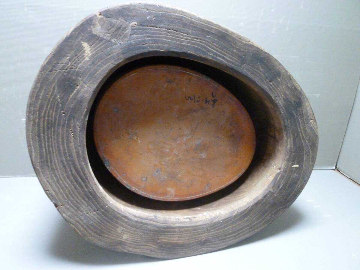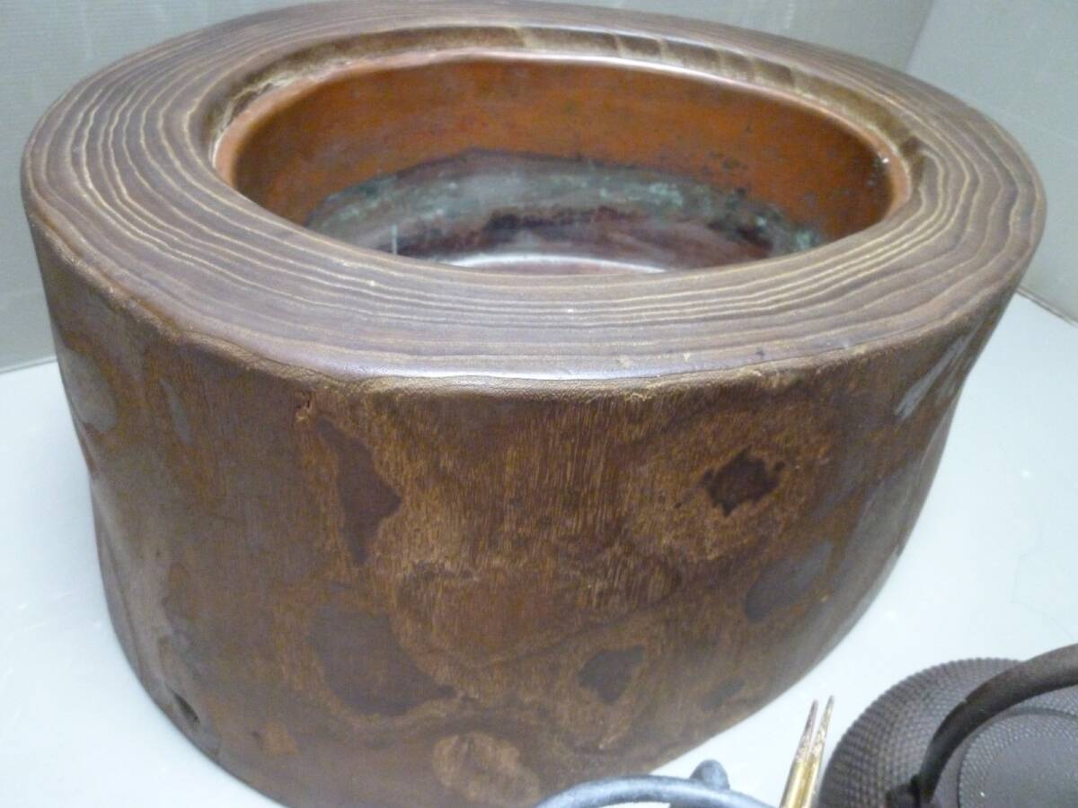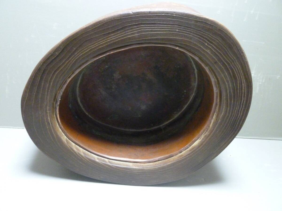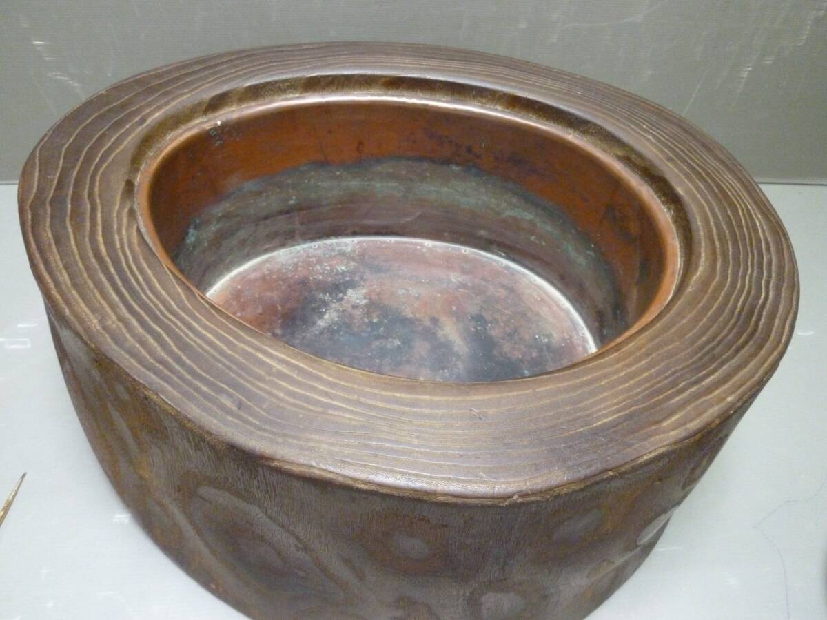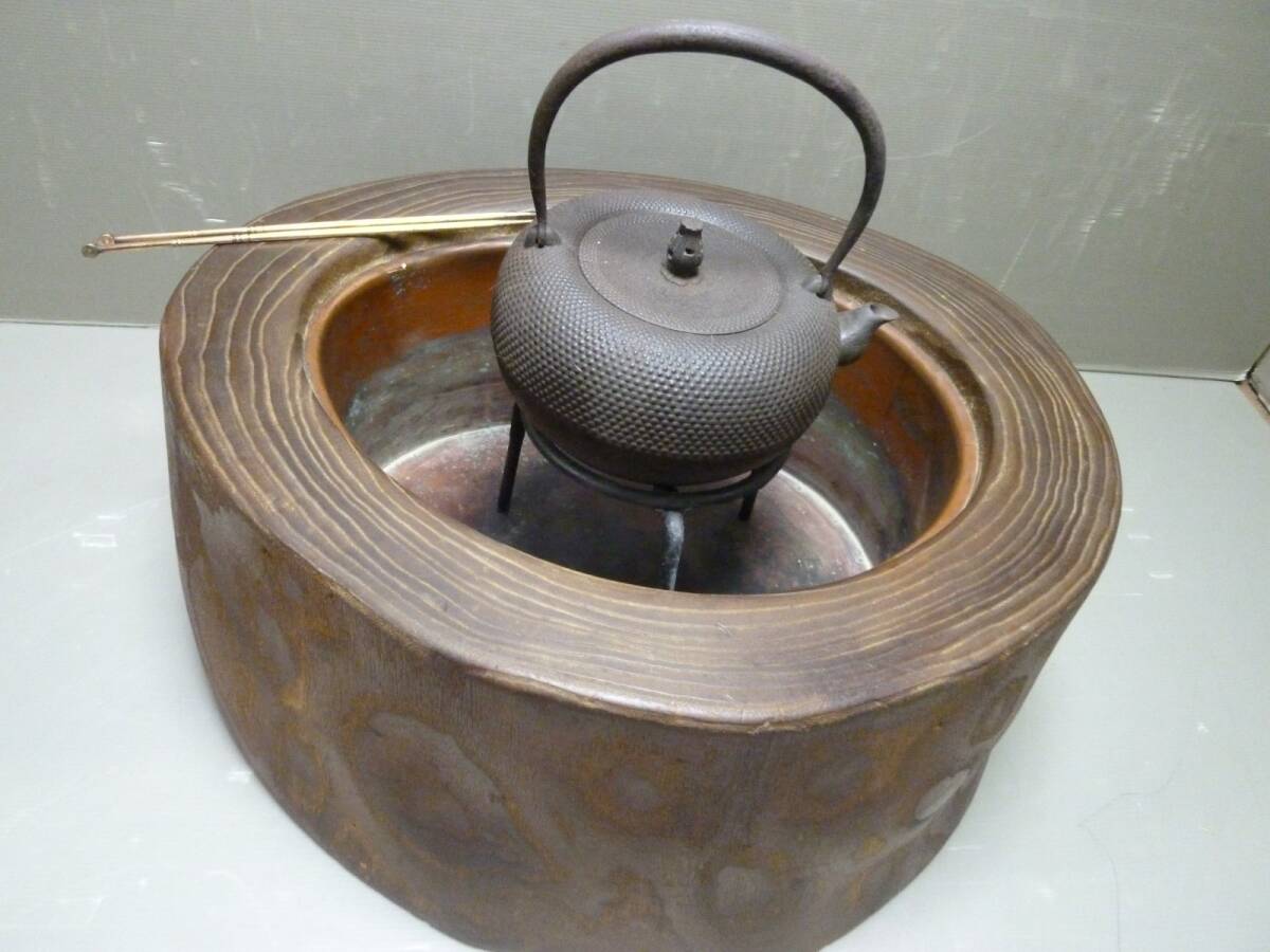 | 42×52センチ丸変形高さ24.5センチセンチ赤銅落とし27.5×35.5せ深さ15センチ緑青汚れあります.総重量10kg 鉄五徳 真鍮火箸 18センチ丸あられ鉄瓶付き 鉄瓶蓋裏に贈記念銘あります. 経年使用胴周り当たり傷擦れありますがご覧のように状態は概ね良好画像が全てです.宅急便140サイズ¥2630~¥4030の発送です. | ||
