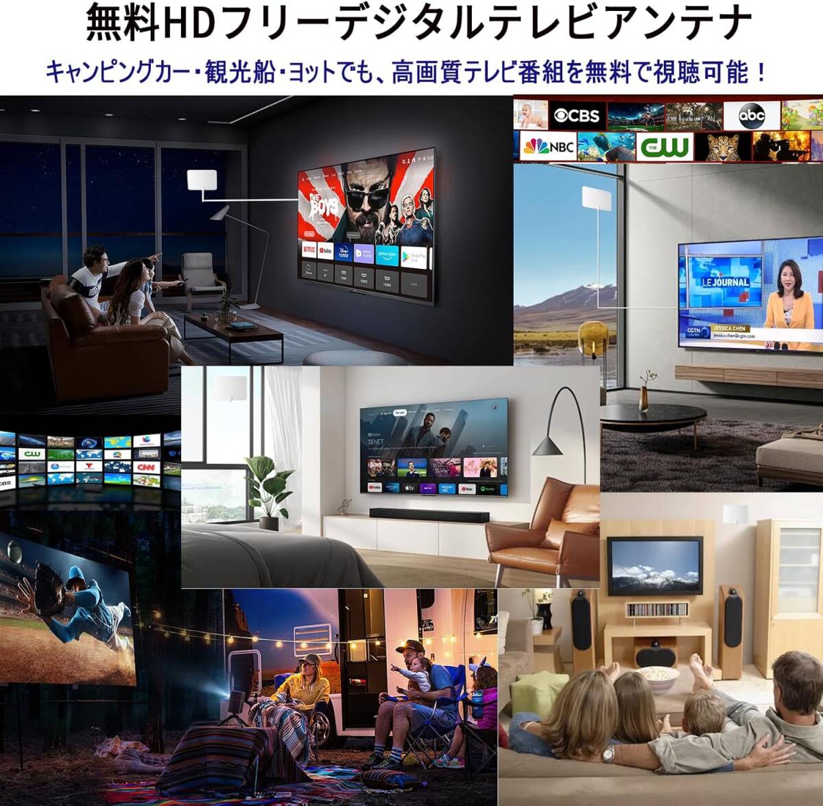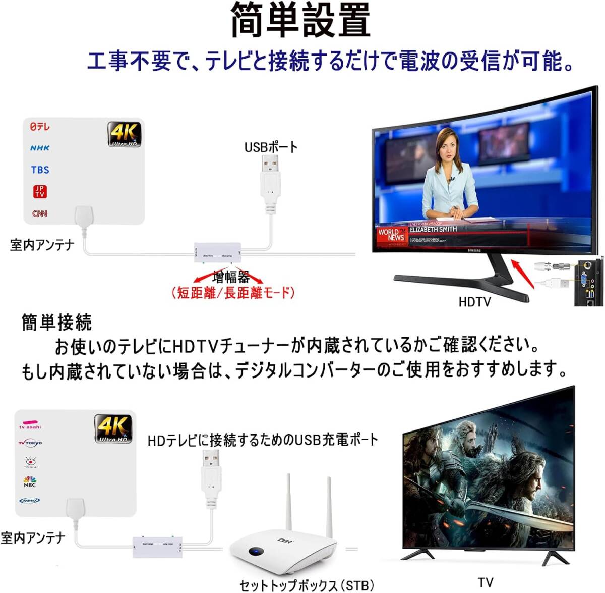 室内アンテナ HDTV 地デジ テレビアンテナ 受信距離600KM 360度全方位受信 4K/1080p対応