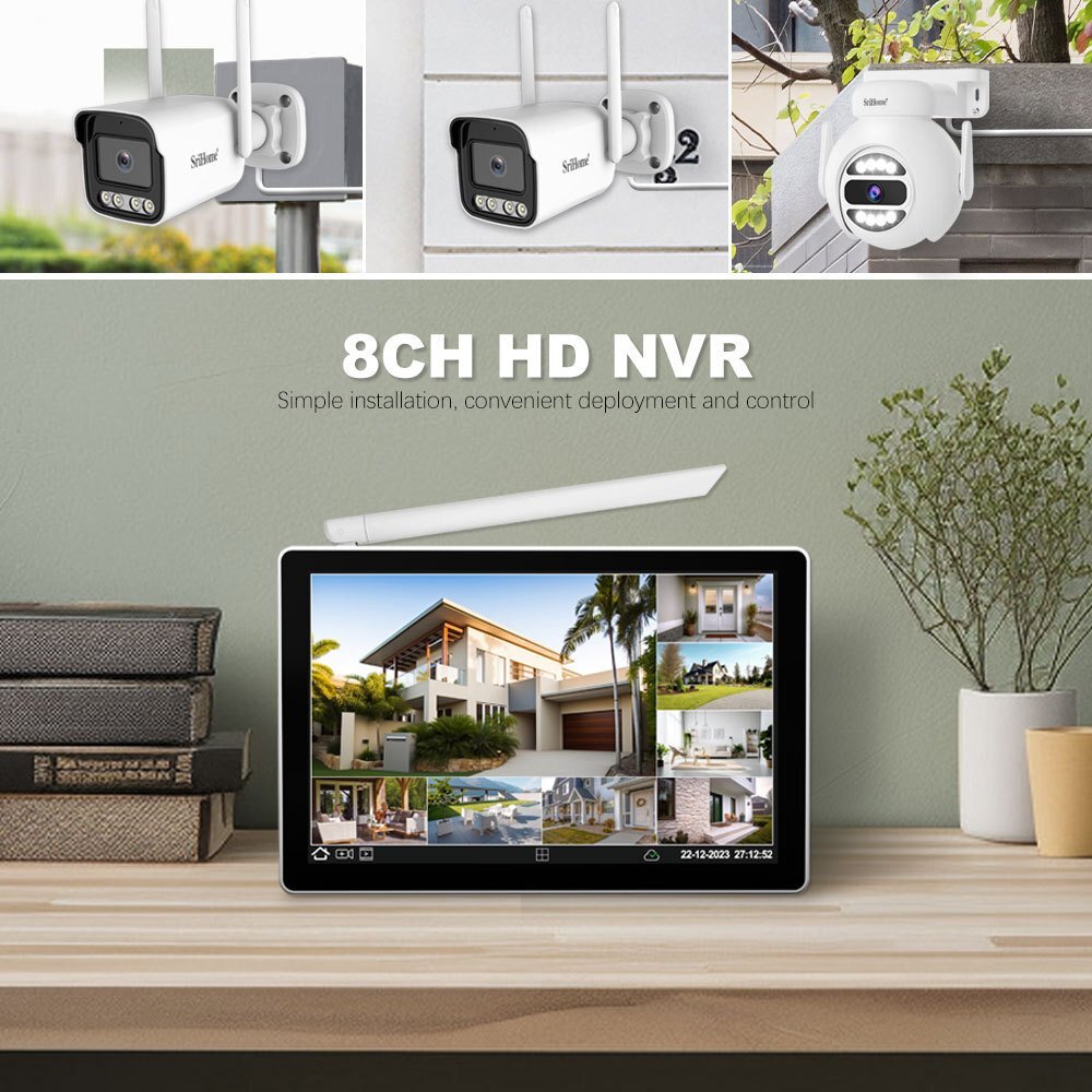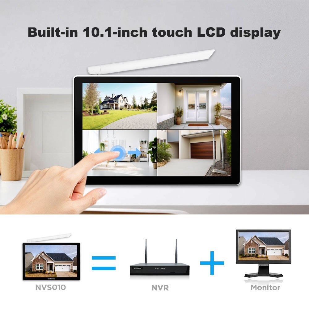 5MPタッチスクリーンワイヤレス監視セット、4チャンネルHDカメラ、家庭用、店舗用モニター,屋外屋内用IP66 10インチモニター付属 WiFi強化