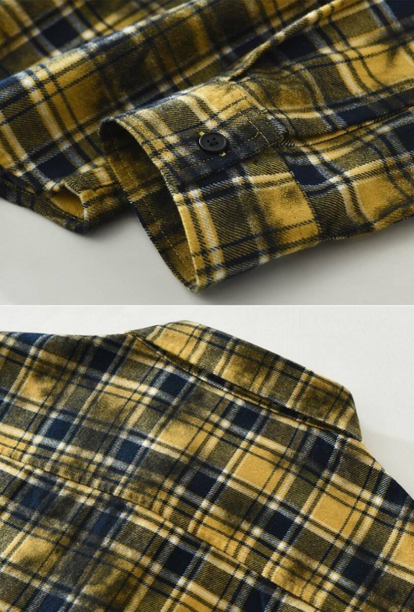 ネルシャツ チェックシャツ 長袖シャツ シャツ 春秋 新品・メンズ シャツジャケッ トップス コットン【SS7965】黄色 3XL