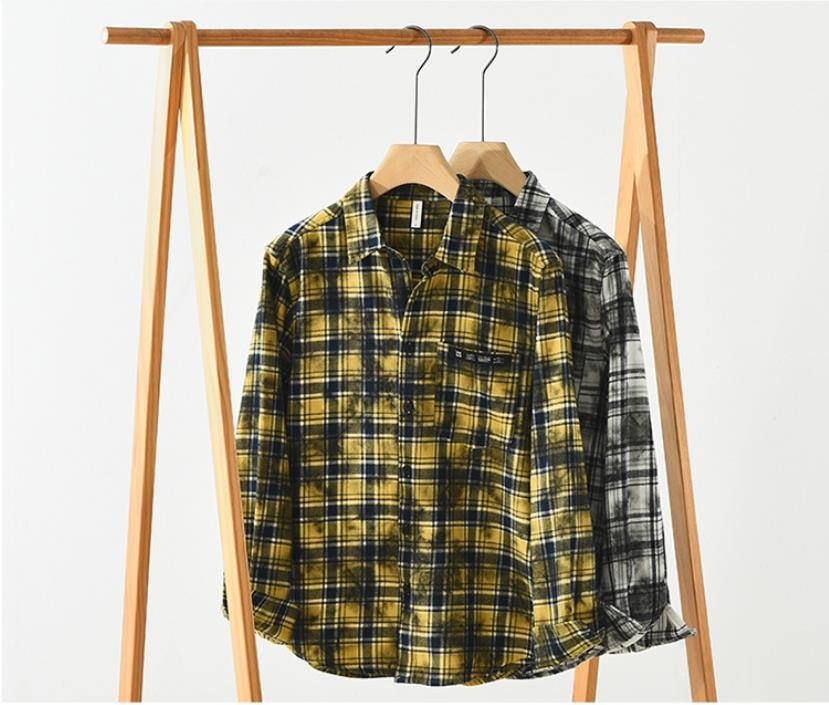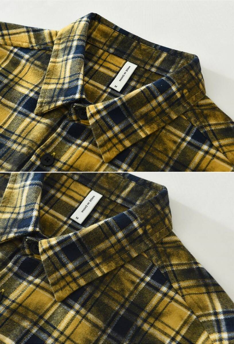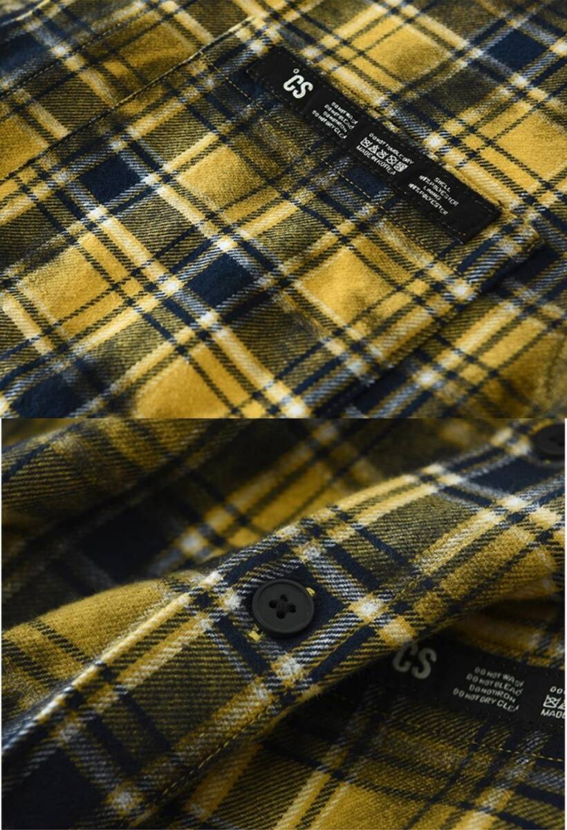 ネルシャツ チェックシャツ 長袖シャツ シャツ 春秋 新品・メンズ シャツジャケット開襟シャツ トップス コットン【SS7965】黄色 3XL