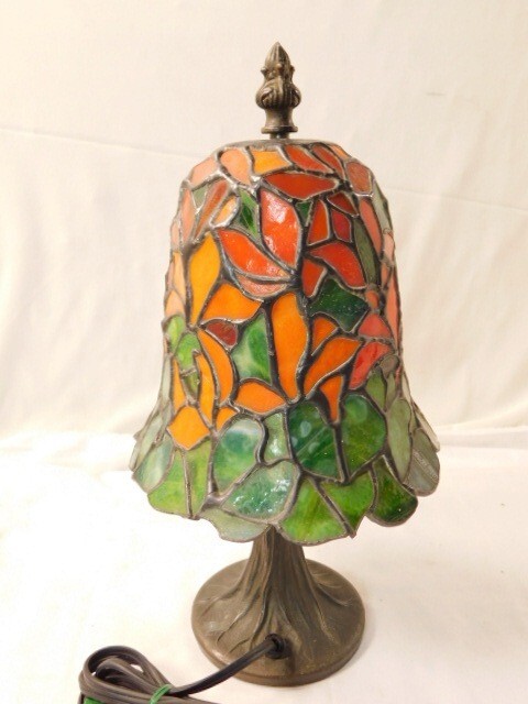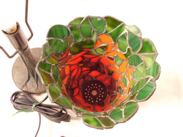 (北海道・九州地方の方は1290円をご負担ください。沖縄、離島はゆうパック送料着払いとなりますのでご了承願います。その他着払いをご指定の場合は送料が変わりますのでご了承ください。ご落札分のみのご入金の場合も着払いとなり、記載の送料よりも高くなる可能性がありますのでご注意ください)(※佐川急便発送ご落札者様から集荷依頼していただければ可能) ※お引き取り歓迎です。お引き取りに来られる場合は、梱包をしませんので、お取メッセージに、ご落札翌日のAM9時までにご連絡くださいm(__)m(引取りは金・土・日以外の朝9時~17時00分まで可能その他ご相談) ※ご落札後、同梱をご希望の商品がありましたら翌日朝9時までに「同梱依頼をする」をチェックしてご連絡ください。こちらから折り返し送料のご連絡をさせていただきます。 ※配送の日時を指定される場合,その他ご要望がありましたら ご落札翌日朝9時までに、お取引メッセージにお知らせ願います。発送の都合でそれ以降にご連絡いただいた内容のご要望はお受けできない場合がありますので予めご了承願います。ご指定日時やご要望は簡潔にご記入ください(宅急便指定可能時間→午前中・14~16時・16~18時・18~20時・19~21時) ★上は赤オレンジ色系で下は緑色系の花柄?の様な感じのランプです。 ★確認用の電球を付けてコンセントを差し、ランプが付くことを確認しました。 ★ステンドグラス?なのかステンドグラス風?なのか詳しい素材はわかりません。 ★触った感じはツルツルしていて、叩くと鈍い音がしました。ランプを付けると気泡の様な物が見えました。
