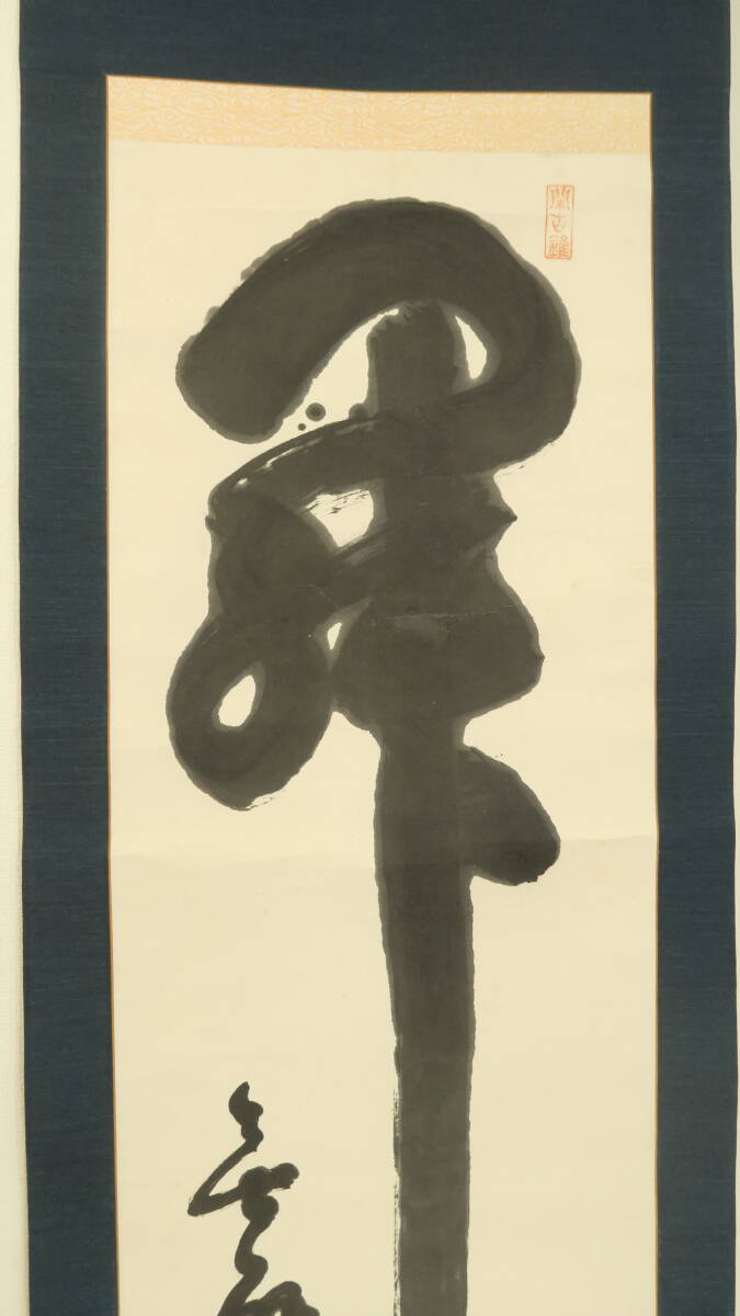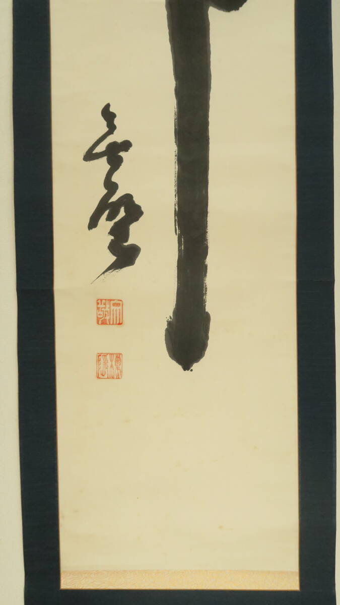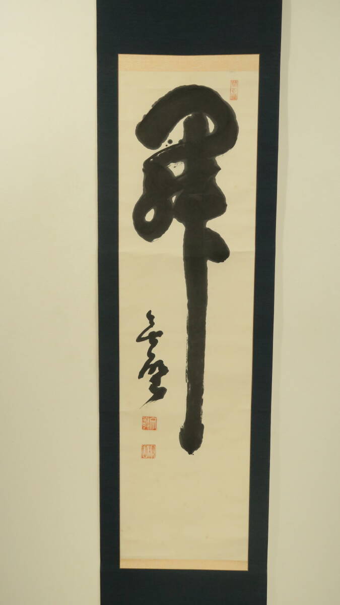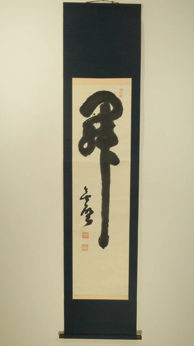 ●商品説明/飯田とう隠書(肉筆)・「關」【真作】。飯田とう隠は、曹洞宗の僧侶。昭和6年に大阪府高槻市に少林窟道場を創設しました。彼は東京大学医学部を卒業後、広島の大本山佛通寺で香川寛量和尚に参禅し、その後、曹洞宗の僧侶として出家しました。独参や禅会を通じて多くの人々に教えを伝え、特に医師としての知識を活かしながら禅の修行を行っていました。彼の道場は、現在も坐禅会が続いており、多くの参禅者が訪れています。●本紙(紙本)寸法;縦123㎝×横33.5㎝。軸寸法;縦193㎝×横43.8㎝。丸表装。オレ。少シミ。桐箱(合箱)入り。●ご入札宜しくお願いいたします。※万が一【真作】でなかった場合、返品承ります。※落札後の値段交渉には応じかねますので、ご了承ください。